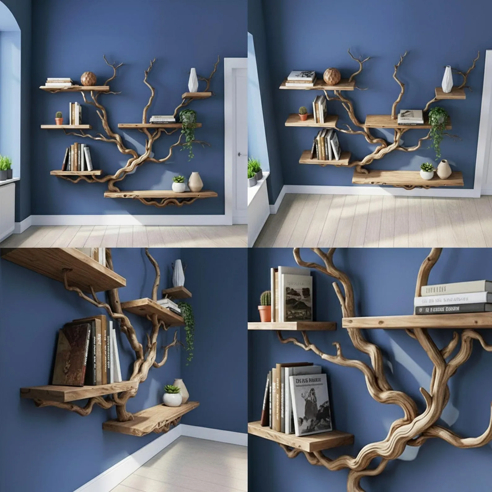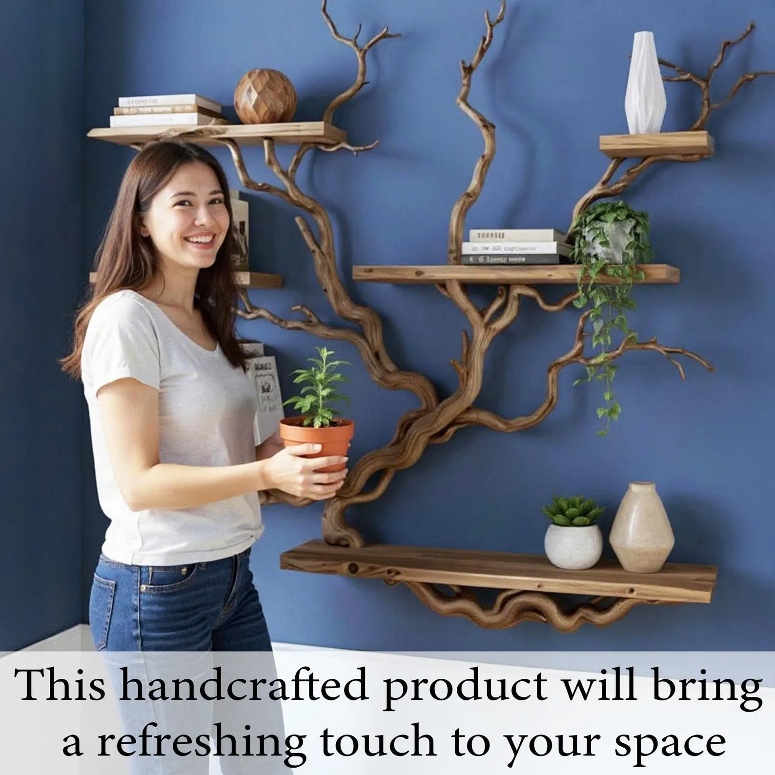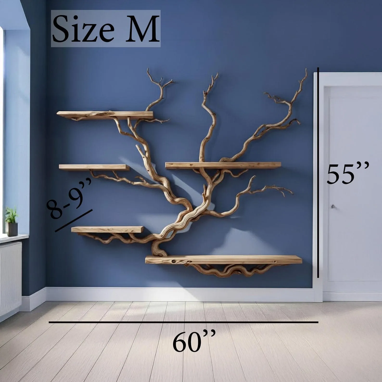 Bring the beauty of nature into your home with this handmade tree branch book shelf furniture, a stunning reclaimed wood bookcase that blends functional storage with artistic design. Our natural wood bookshelf on wall is carefully handcrafted from solid wood, each tree branch wall shelf is shaped like a branching tree, with smooth floating shelves that provide both strength and elegance. This nature-inspired branch bookshelf transforms any wall into a unique focal point, perfect for displaying your favorite novels, collectibles, framed photos, succulents, or decorative accents. This wall mounted shelves with its sculptural form and organic details, bookcase solid wood fits seamlessly into a variety of interior styles, whether you prefer a rustic farmhouse living room, cozy cottage bedroom, boho modern home office, or creative art studio d?or. Each driftwood book shelf is one of a kind, highlighting the natural wood grain and artisanal craftsmanship, making tree book shelf not only a functional wall storage solution but also a timeless tree branch bookcase of eco-friendly wooden wall art.Designed to save space while enhancing the atmosphere of your room, this driftwood tree shelf arrives in detachable parts for safe transport and easy assembly. Handmade to order within 5?7 days and shipped internationally via trusted couriers such as UPS or DHL, vintage bookcase is carefully packed to ensure it reaches you in perfect condition. Its customizable dimensions allow it to adapt perfectly to your wall space, making wall mount bookshelf versatile for different room sizes and design preferences. Whether used as a unique bookcase, a rustic wall shelf, or a boho-chic d?or element, this handcrafted driftwood tree shelf elevates any space with warmth, creativity, and a touch of nature. Perfect as a housewarming gift, wedding present, or anniversary gift, this custom bookshelf more than just a bookshelf?it?s a functional work of art that brings the outdoors inside and celebrates the beauty of sustainable craftsmanship.? Key Features:Handmade from solid wood ? each wall mounted shelf highlights natural wood grain and unique organic shapesWall-mounted tree bookshelf ? our floating bookshelf saves floor space while adding character to your homeVersatile d?or ? our tree branch wall shelf perfect for books, collectibles, succulents, framed photos, or small plantersCustomizable size ? our tree branch shelf tailored to fit your wall dimensionsFlat-pack shipping ? this wooden bookshelf shipped in detachable parts for easy, safe transport and simple assembly at homeEco-friendly materials ? our custom bookshelf on wall sustainable wood chosen for durability and natural beauty