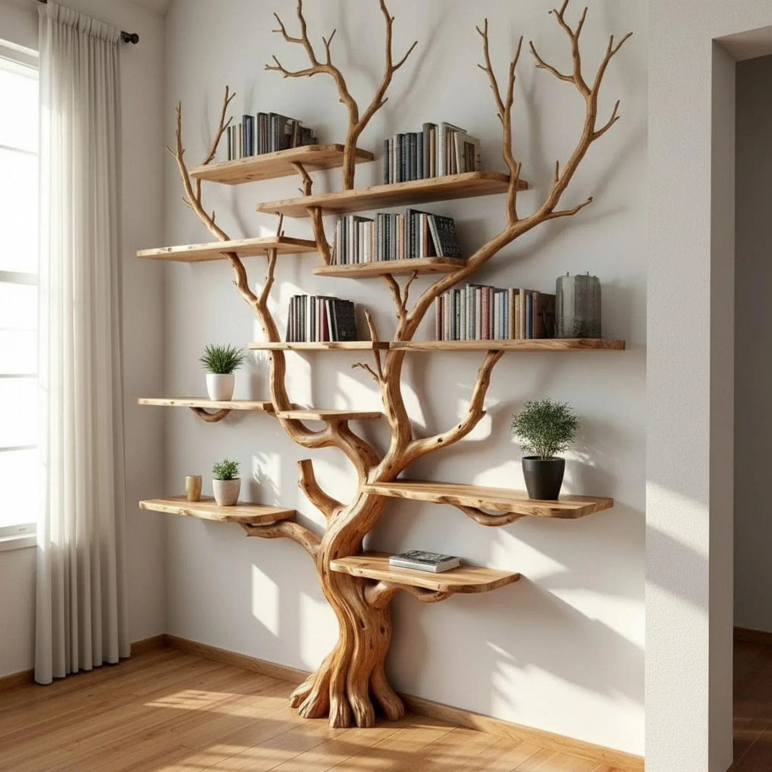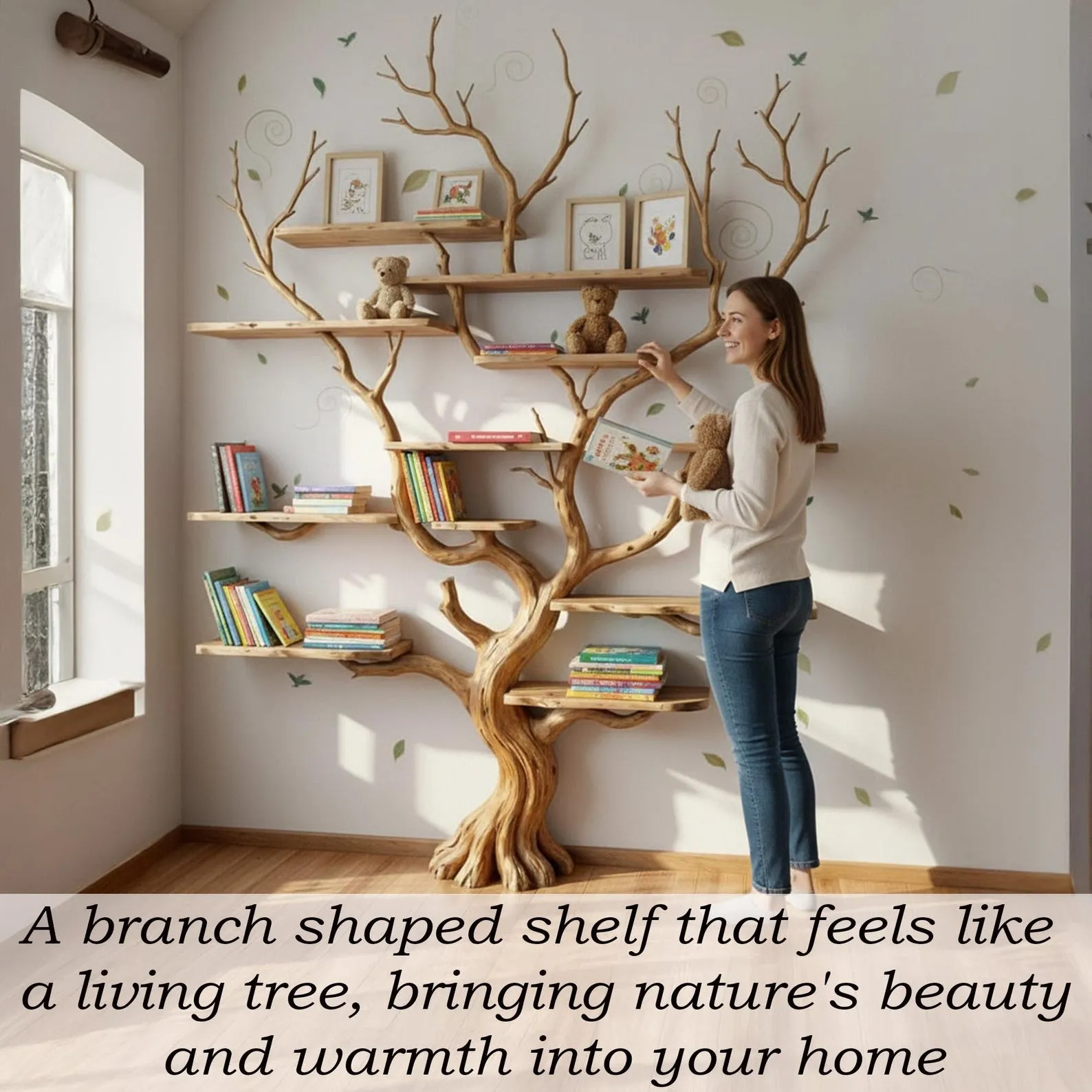 Bring home this tree wall bookshelf rustic farmhouse Decorran eco-friendly, handmade, and unique tree branch bookcase that captures the spirit of nature. With its flowing silhouette, reclaimed wood origins, and artisanal craftsmanship, this branch shelf is more than furniture: it’s a story of tradition, sustainability, and artistry designed to last for generations.
