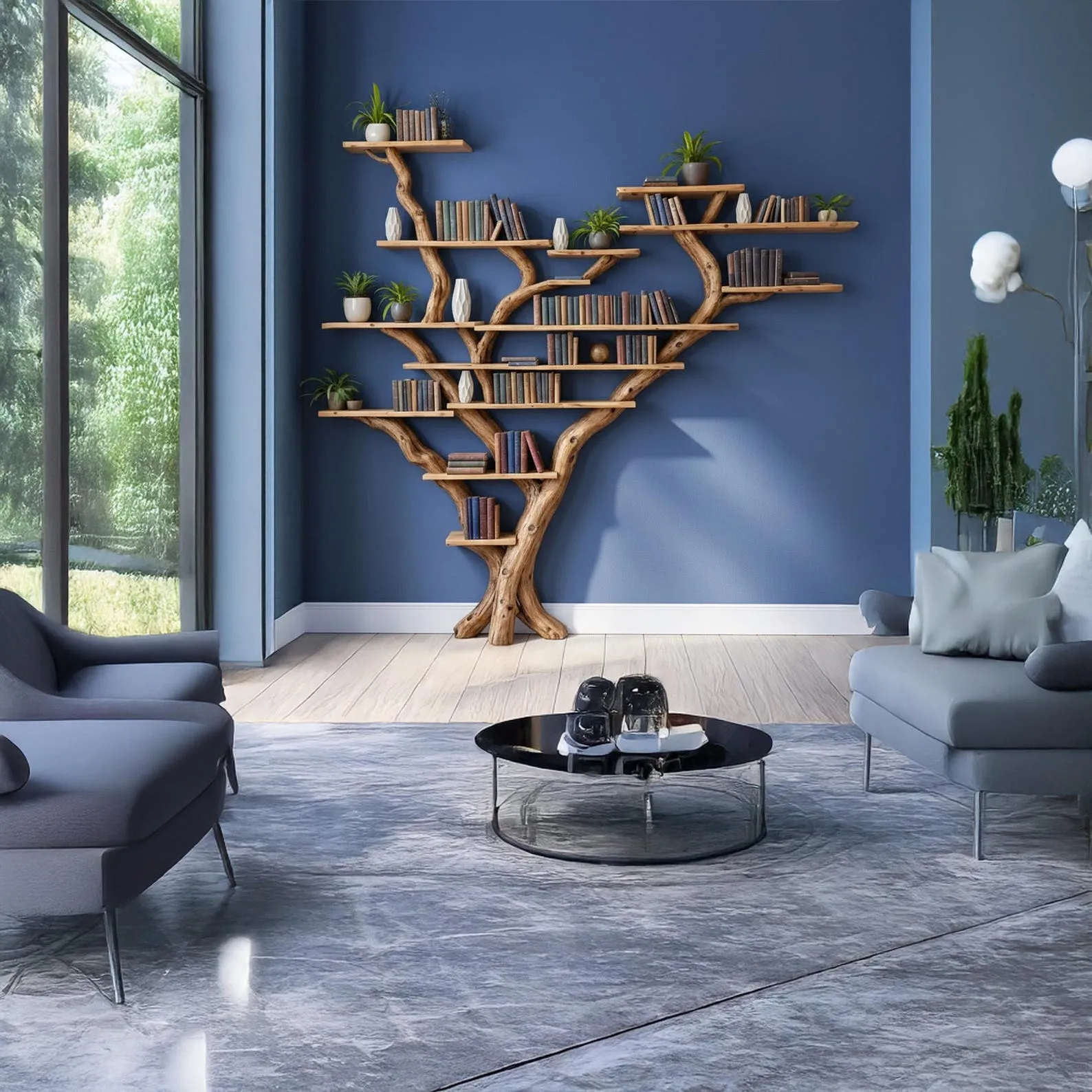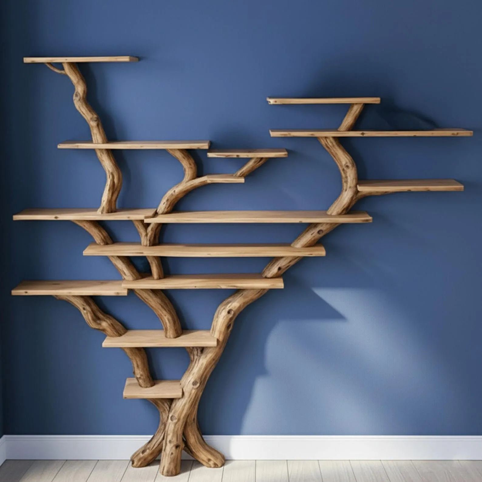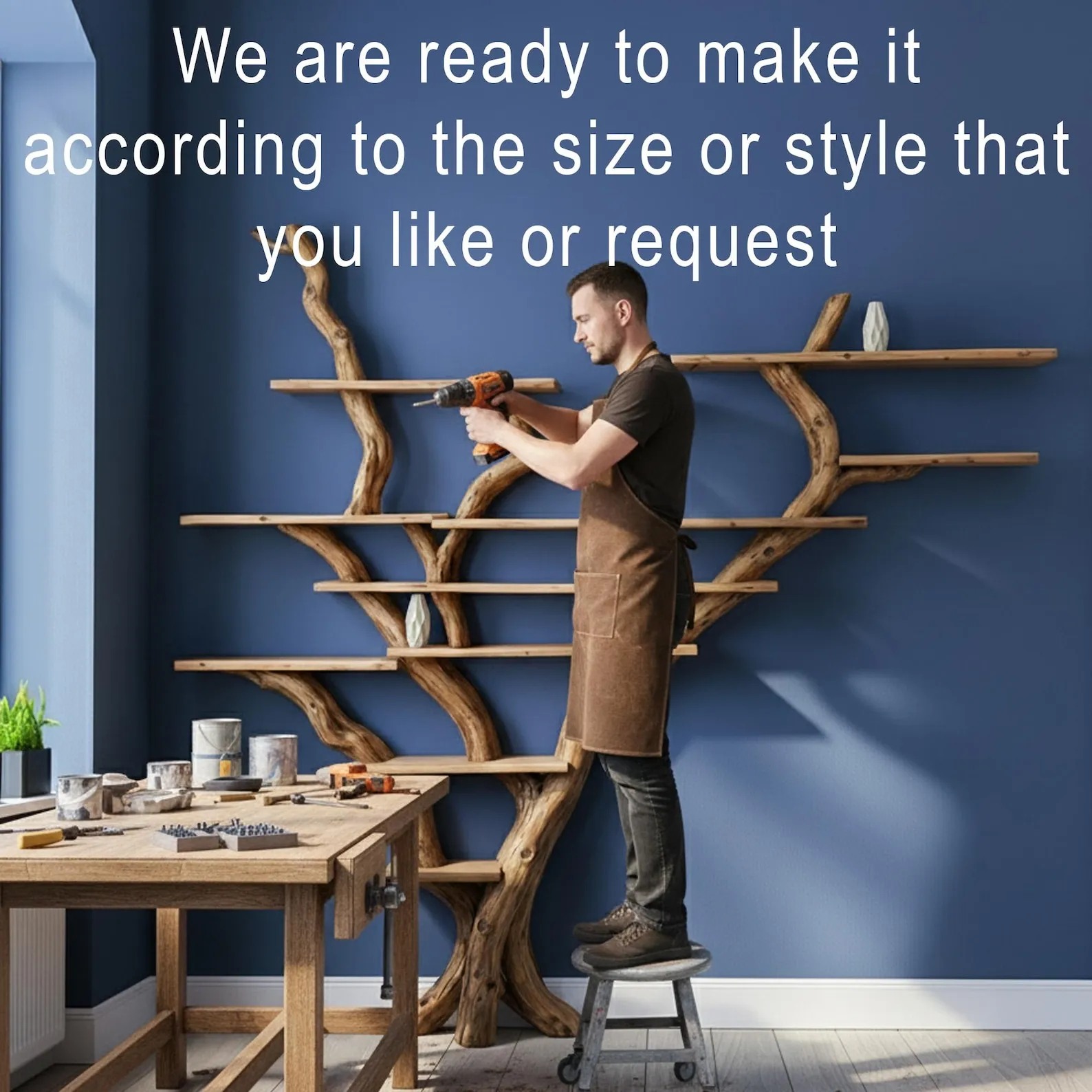 Transform your interior with this handcrafted tree branch wall bookshelf, a stunning fusion of functionality and natural artistry. Made from durable solid wood, every shelf is shaped to highlight the organic curves of real branches, creating a unique centerpiece that feels both rustic and elegant. No two designs are ever the same, making each piece a true one-of-a-kind creation.This rustic wall-mounted tree shelf unit offers versatile storage and display options. Whether you use it to organize novels, magazines, and journals or to showcase plants, ceramics, and decorative accents, it instantly becomes a focal point in any room. Perfect for modern farmhouse, Scandinavian, or bohemian interiors, it blends seamlessly with a variety of home styles while adding warmth and character.Designed with both beauty and practicality in mind, this large artistic tree branch bookshelf for living room walls provides strong support and ample space. The shelves are carefully crafted to hold books and collectibles securely, while the tree-like structure enhances your wall with an organic, sculptural look. Its multifunctional design makes it equally suitable as a natural wood plant display rack, allowing you to integrate greenery into your d?or.Each piece is handmade by skilled artisans, ensuring high-quality craftsmanship and timeless appeal. For easy and safe international delivery, the bookshelf is shipped in detachable parts, carefully packaged, and simple to reassemble upon arrival. This thoughtful construction guarantees both protection during transit and convenience for the customer.Production time: 5?7 daysWorldwide shipping: 5?7 days via trusted carriers such as UPS or DHLWith its combination of durability, artistry, and functionality, this eco-friendly solid wood tree shelf for home d?or is more than furniture ? it?s a statement piece that turns any wall into a living work of art.
