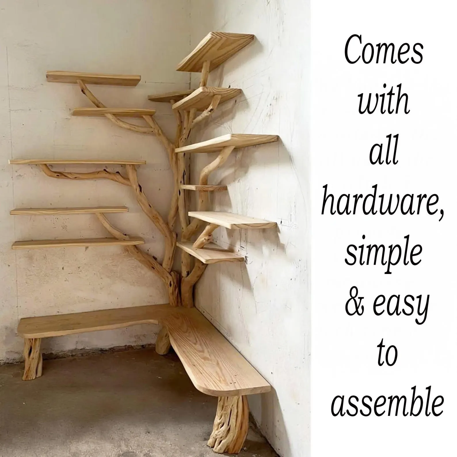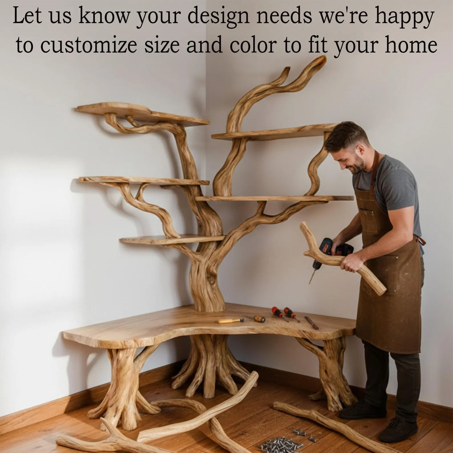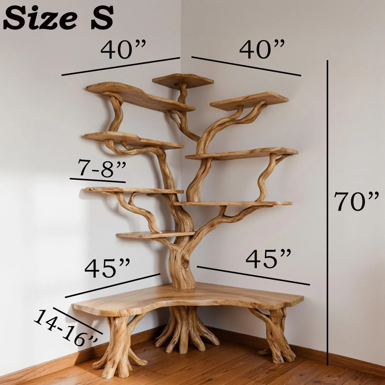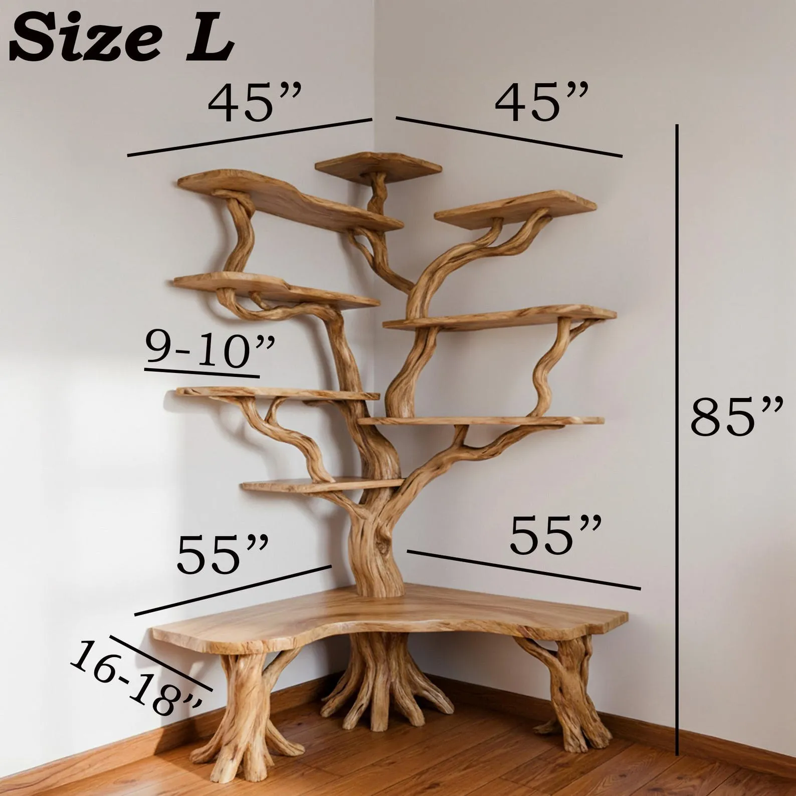 Customizable Options Choose from different sizes, wood finishes, or layouts. We send progress photos of corner tree shelf during production so you can approve the final design.
