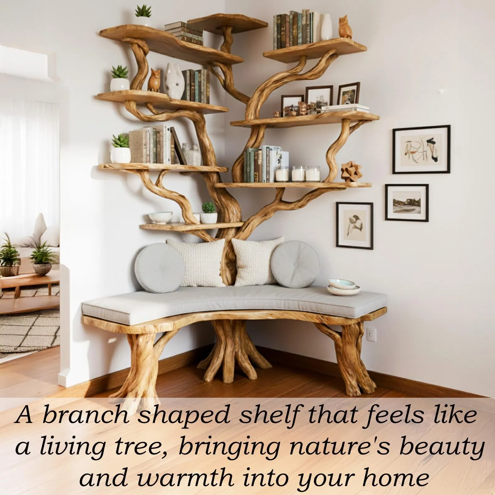 This tree branch shelf adapts beautifully to any style whether you???re creating a cozy farmhouse corner, a Japandi reading nook, a rustic cabin vibe, or a minimalist urban apartment.