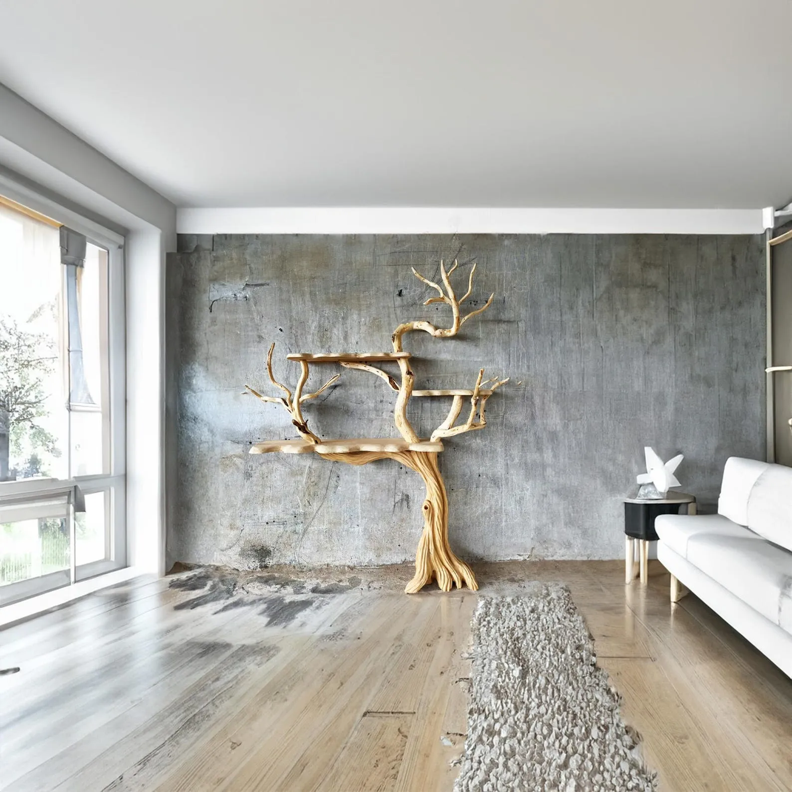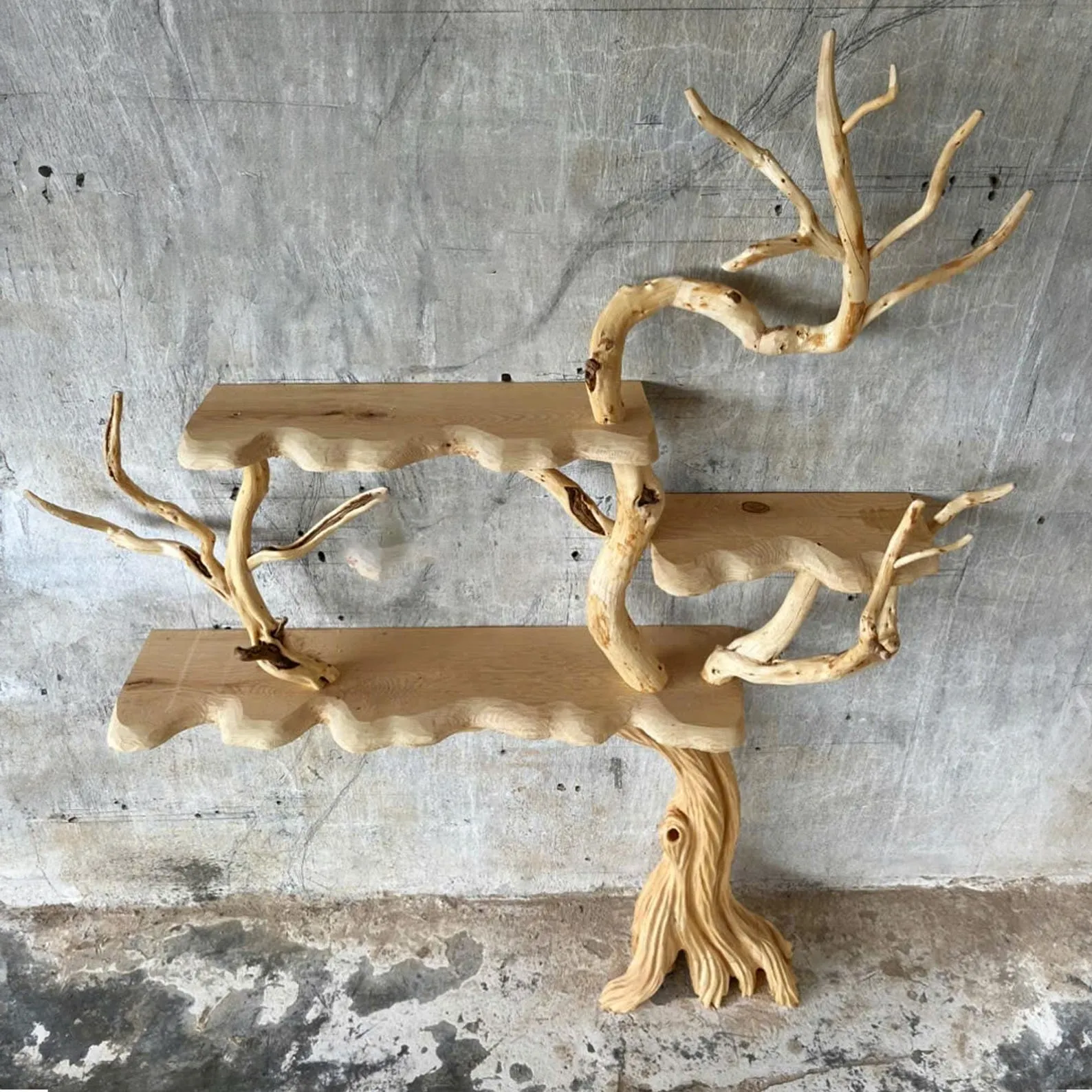 Tree branch bookshelf driftwood branch handcrafted wood art custom floating shelves on wall for home decoration