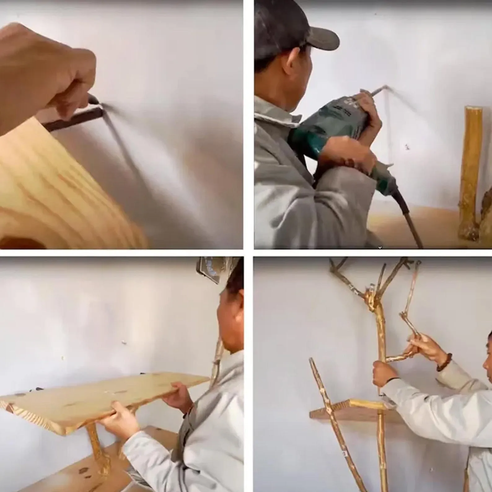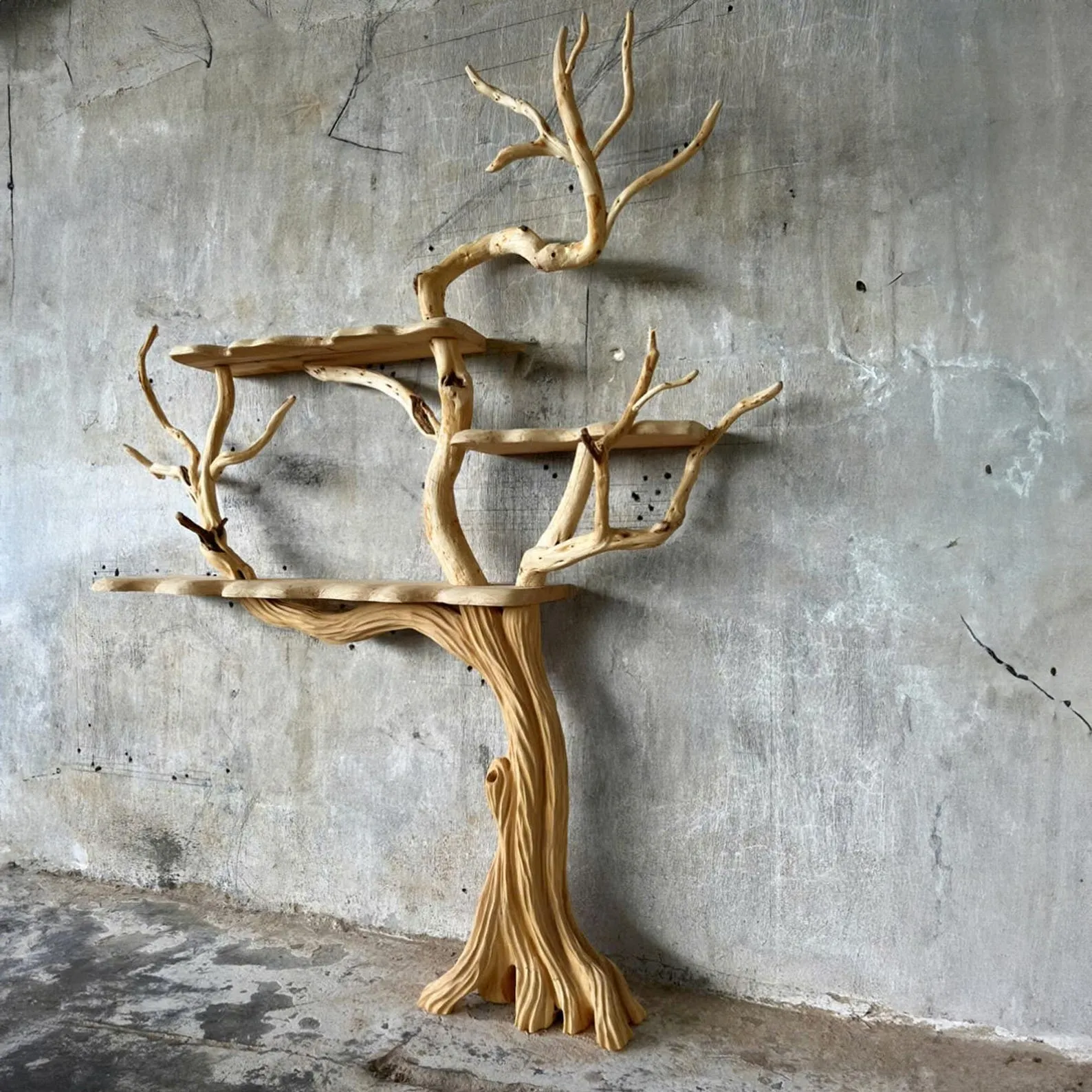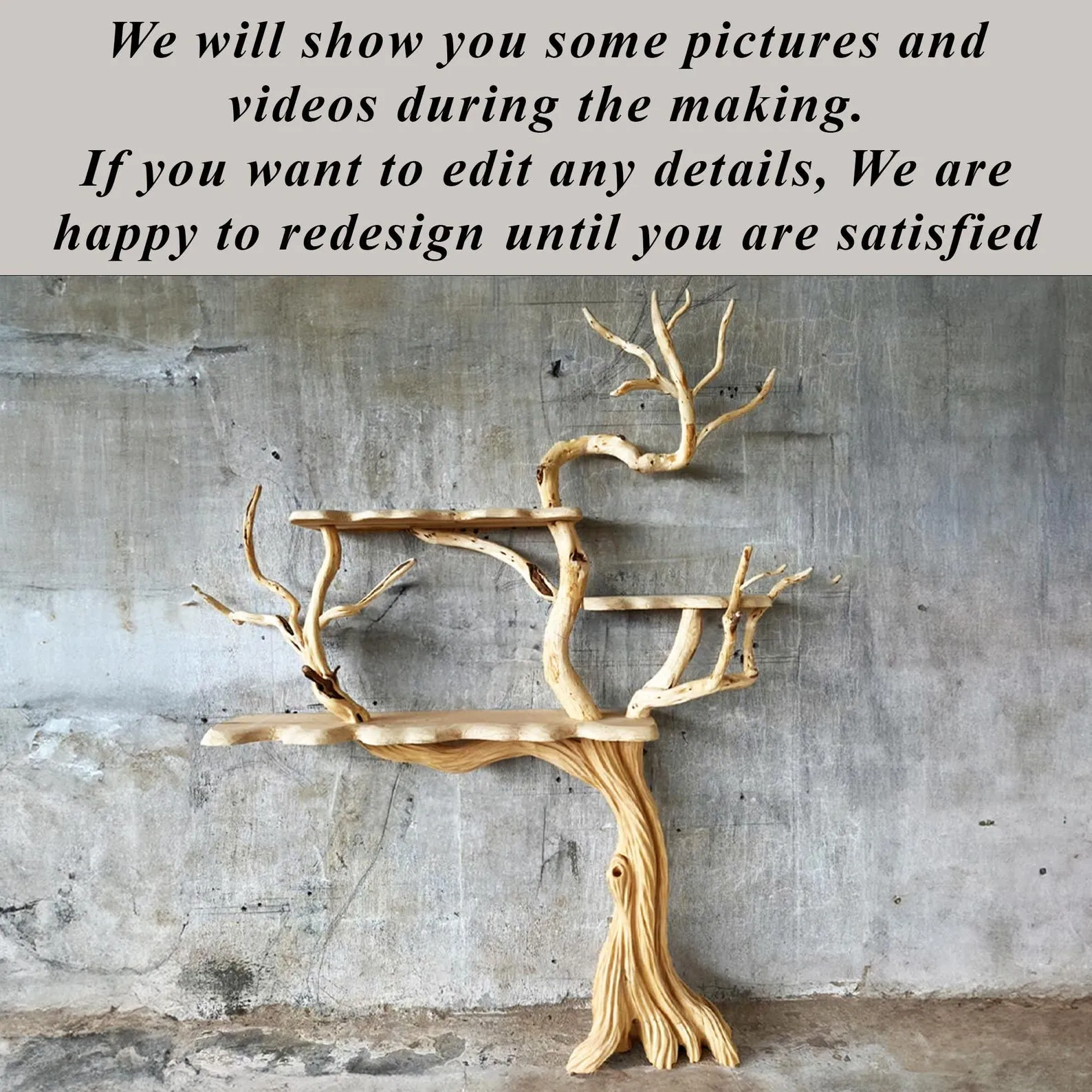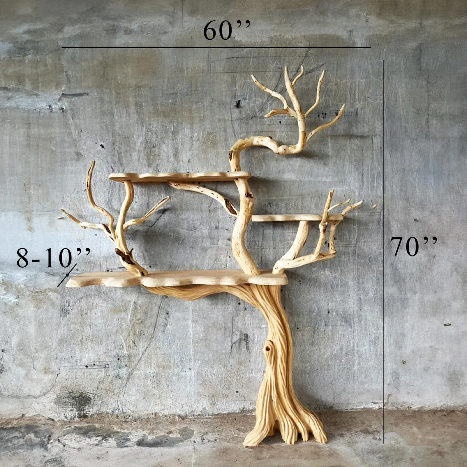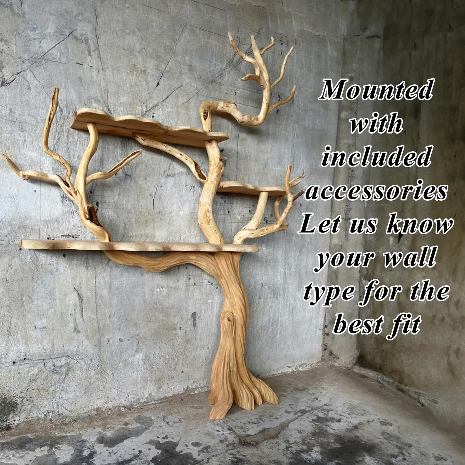 Antique shelving unit crafted from solid wood, this tree branch shelves on wall seamlessly combines practical storage with the raw beauty of nature by incorporating real tree branches into its design. The unique fusion of wood warmth and natural aesthetics creates an organic piece of furniture that adds rustic charm to any living space.Made from high-quality wood, the shelves provide ample space for organizing books and displaying decorative items. The incorporation of natural branches as part of the support structure not only reinforces the shelving but also brings a touch of the outdoors inside.The sturdy construction ensures both functionality and longevity, while the integration of real tree branches adds an authentic touch, enhancing the overall visual appeal with natural textures and variations in the wood.Ideal for those who appreciate the beauty of natural materials, this natural wood bookshelf with natural branches effortlessly blends with both modern and rustic interior styles. It not only serves as a functional storage solution but also adds a unique and earthy charm to home decor.? Please allow for a 1-3 inch variance due to manual measurements.? For custom adjustments to shelf dimensions or tree branch design, feel free to contact us; we are ready to design it to seamlessly fit into your living space.? Please see assembly instructions here: https://www.youtube.com/watch?v=aQ5QKIyKk8gWe take pride in serving you with dedication and care ????
