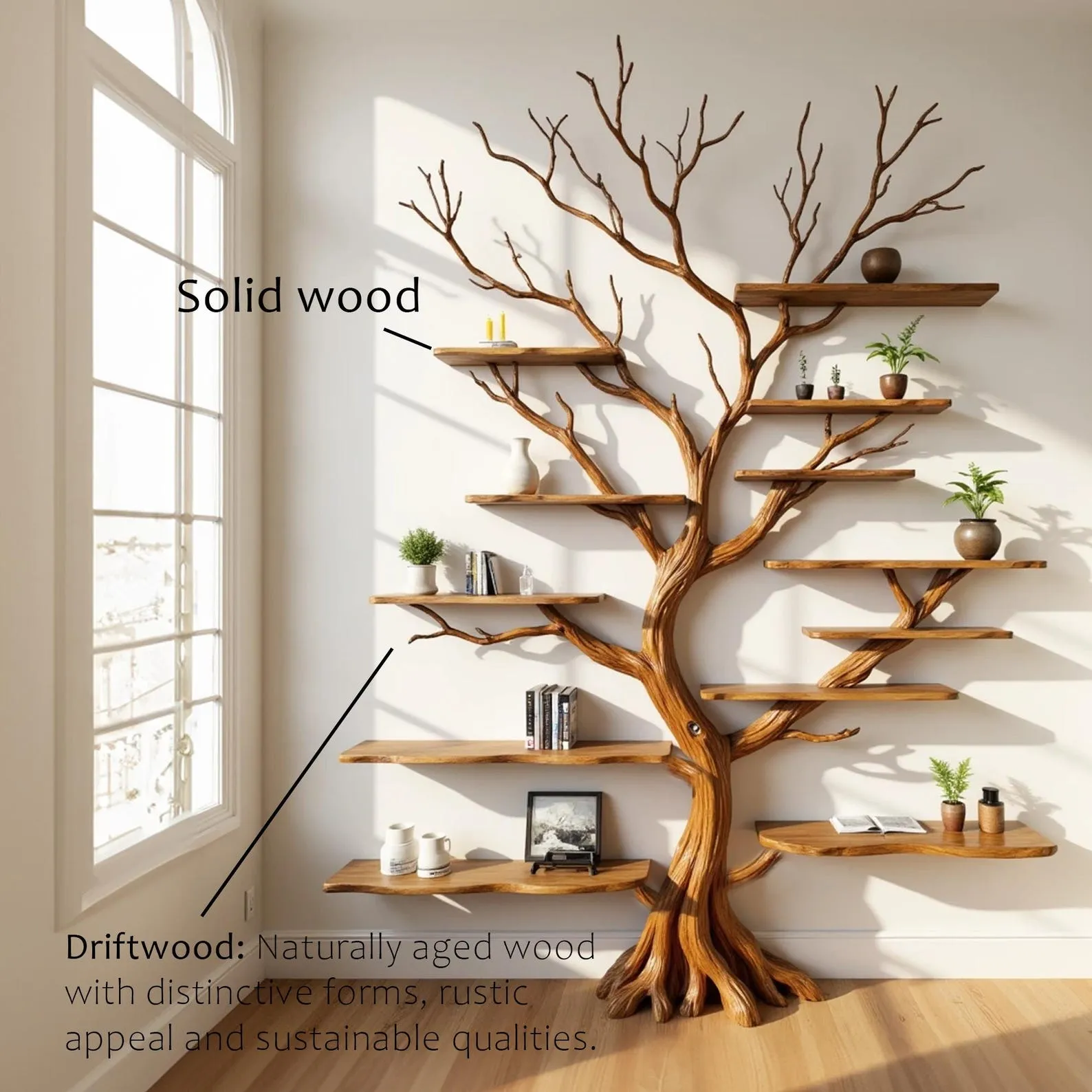 Tree branch bookshelf driftwood shelf art decor wall mounted bookcase handmade furniture for home