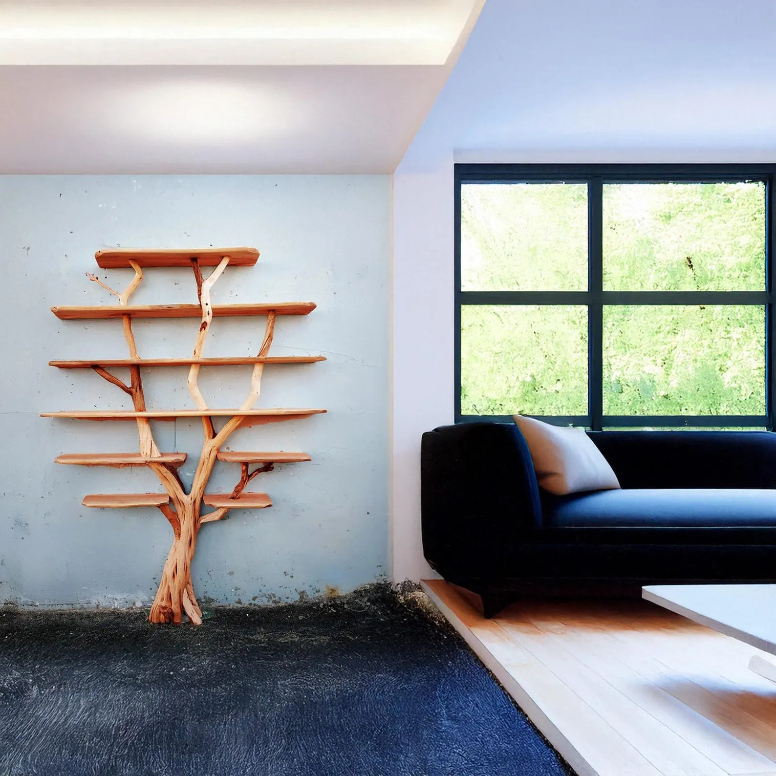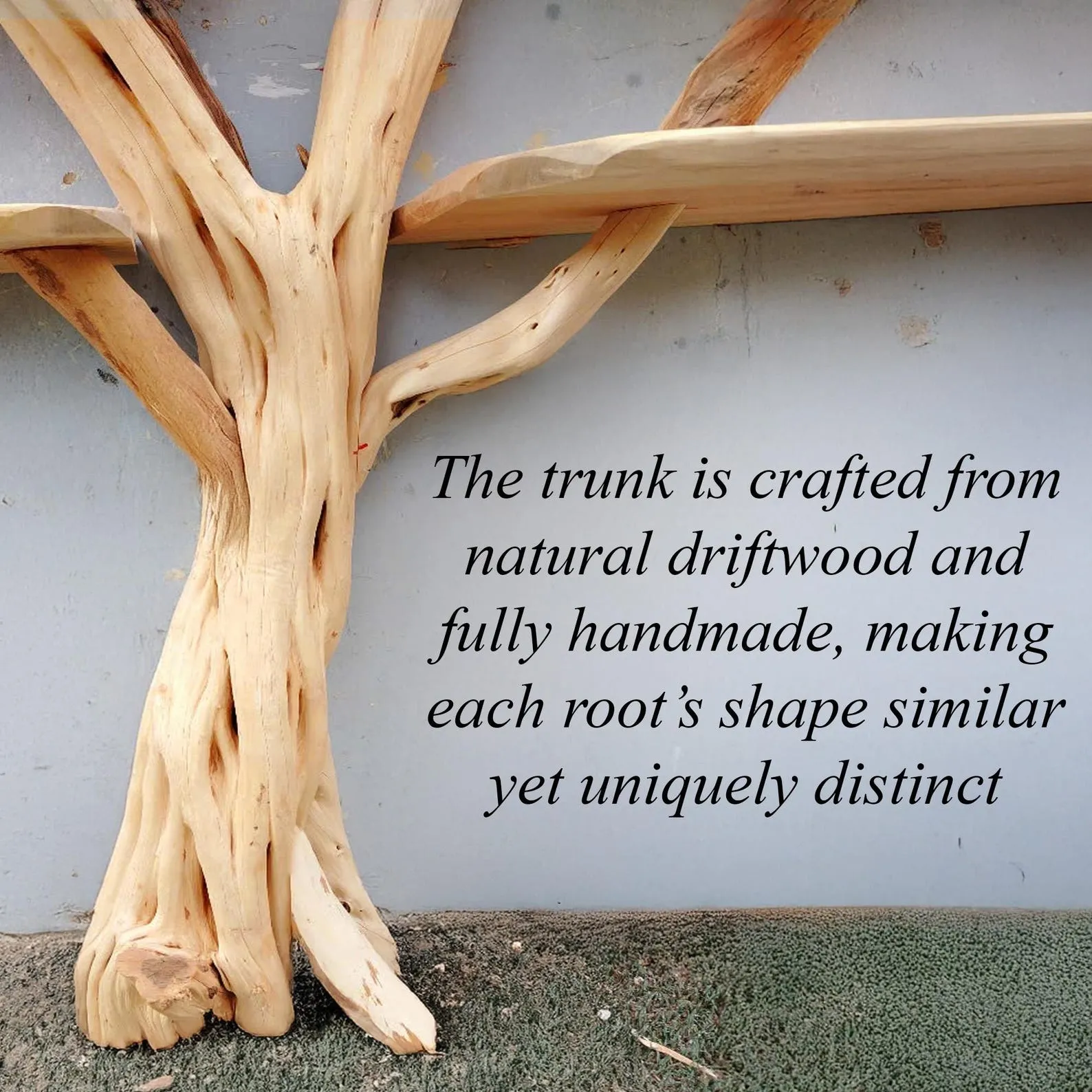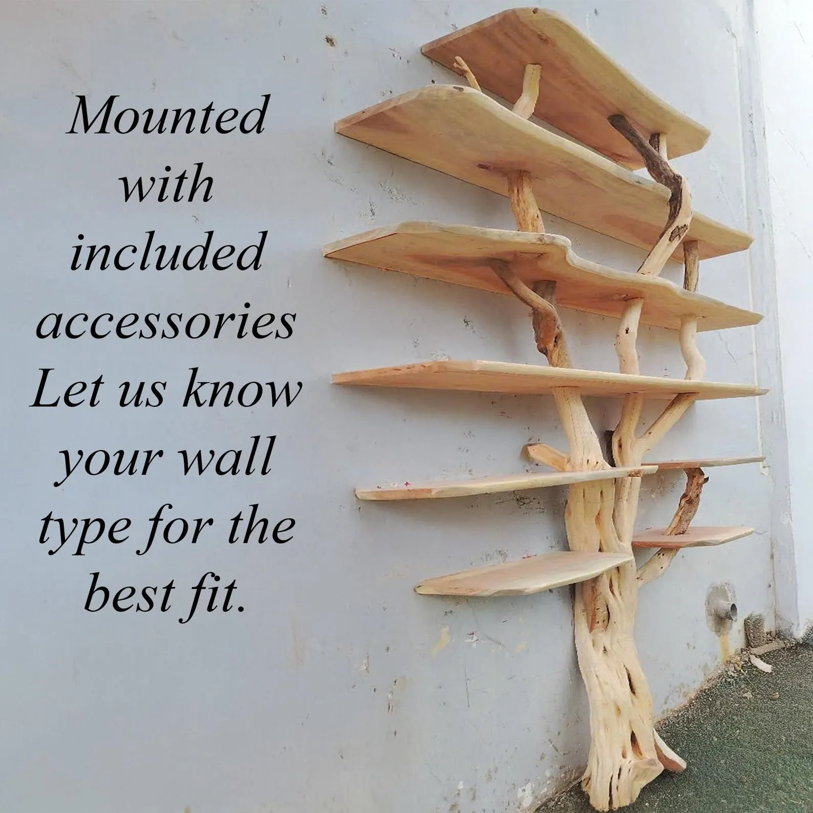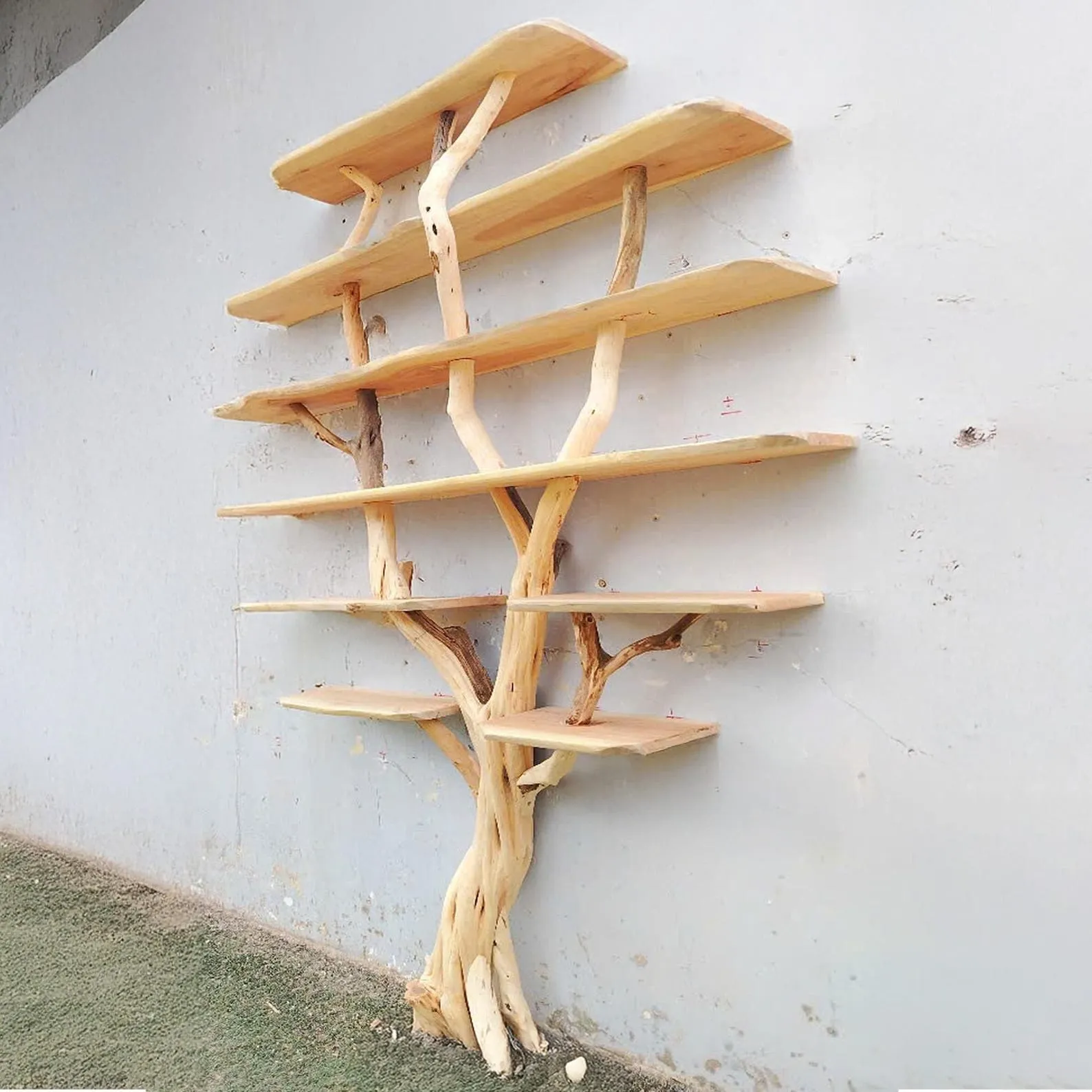 Tree branch bookshelf solid wood shelves on wall driftwood handcrafted for home decoration