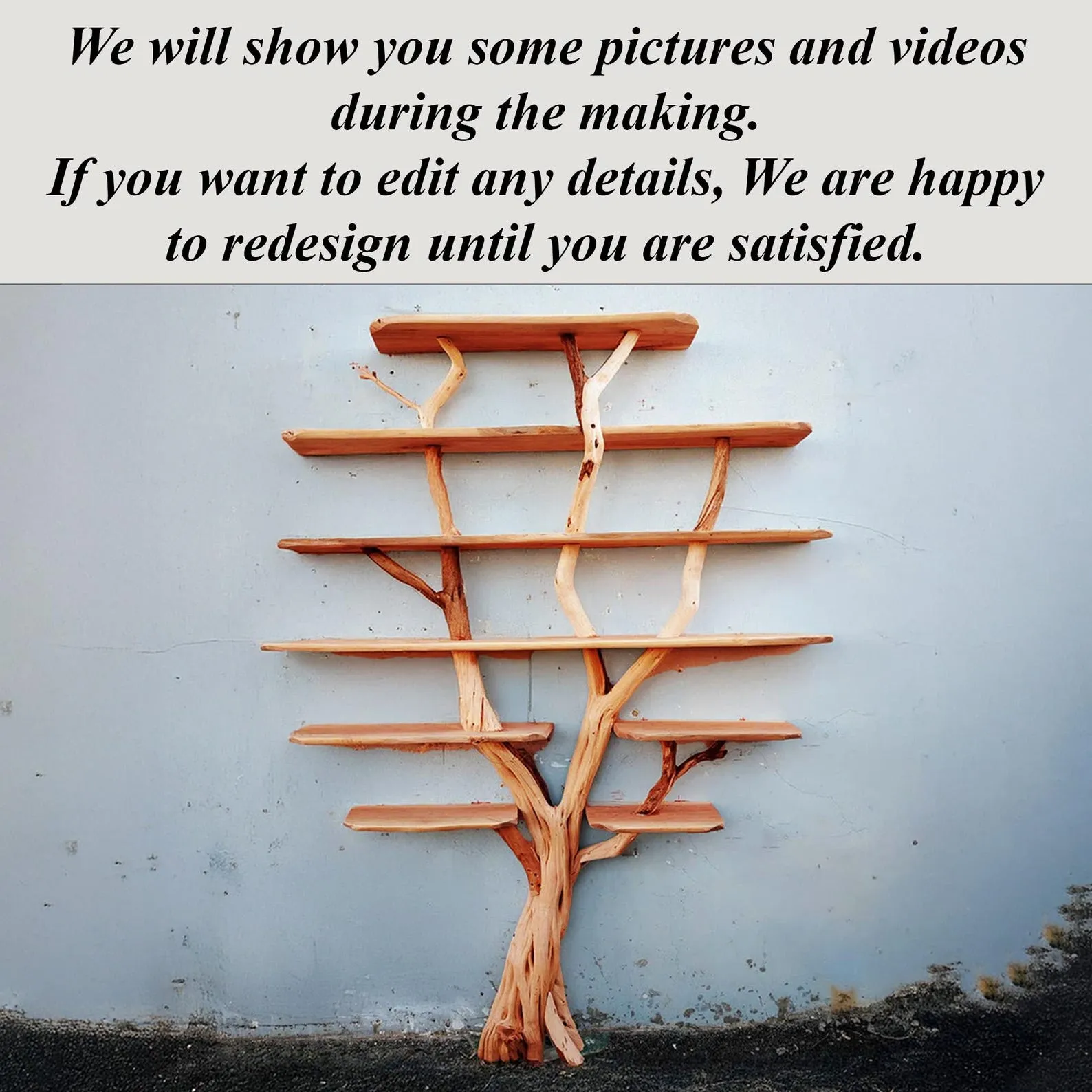Antique shelving unit crafted from solid wood, this bookshelf solid wood seamlessly combines practical storage with the raw beauty of nature by incorporating real tree branches into its design. The unique fusion of wood warmth and natural aesthetics creates an organic piece of furniture that adds rustic charm to any living space.The sturdy construction ensures both functionality and longevity, while the integration of real tree branches adds an authentic touch, enhancing the overall visual appeal with natural textures and variations in the wood.Made from high-quality wood, the shelves provide ample space for organizing books and displaying decorative items. The incorporation of natural branches as part of the support structure not only reinforces the shelving but also brings a touch of the outdoors inside.Ideal for those who appreciate the beauty of natural materials, this wooden bookshelf with natural branches effortlessly blends with both modern and rustic interior styles. It not only serves as a functional storage solution but also adds a unique and earthy charm to home decor.? Please allow for a 1-3 inch variance due to manual measurements.? For custom adjustments to shelf dimensions or tree branch design, feel free to contact us; we are ready to design it to seamlessly fit into your living space.? Please see assembly instructions here: https://youtube.com/shorts/mrrFIbs3edg?si=lLEieOR5ZFBS670jWe take pride in serving you with dedication and care ????