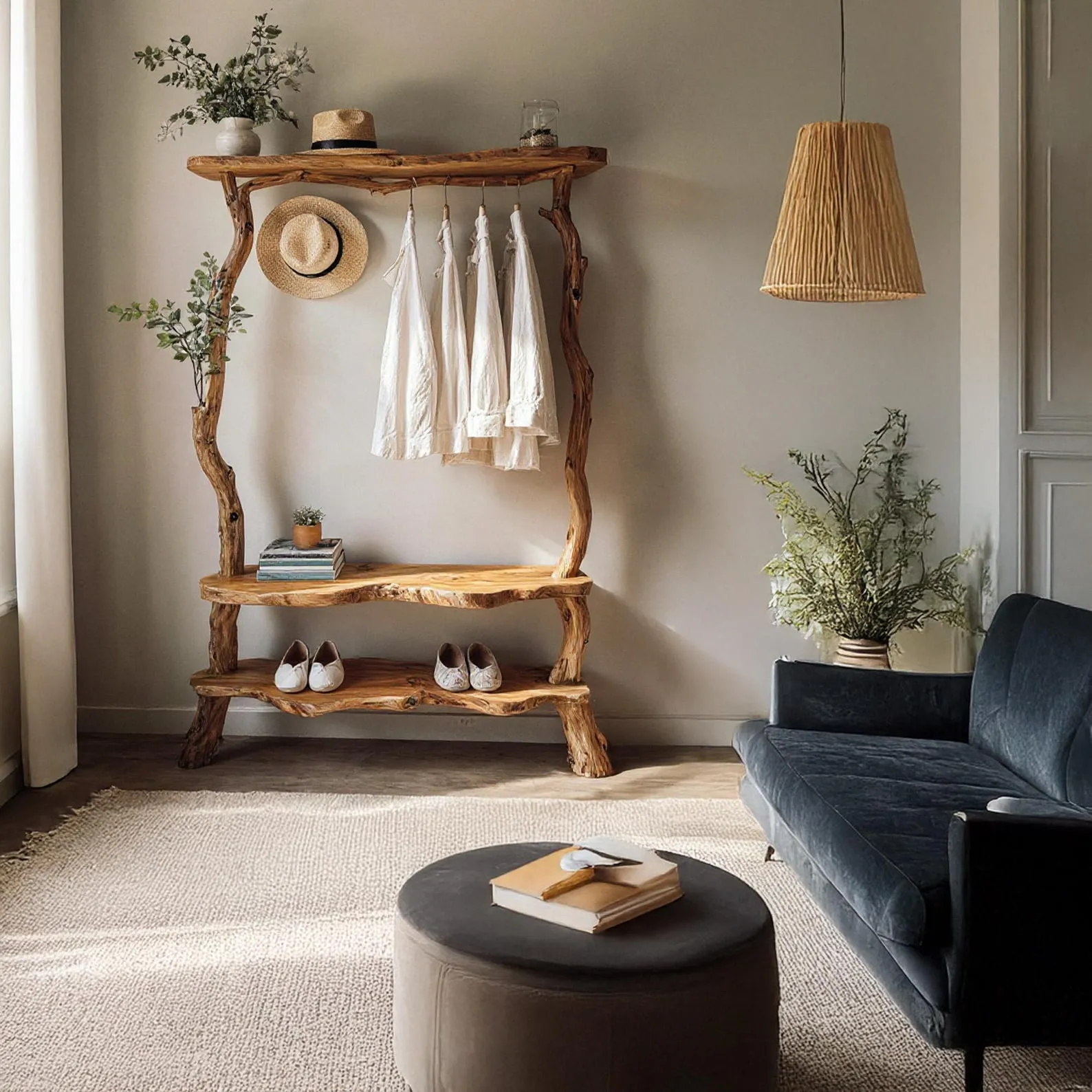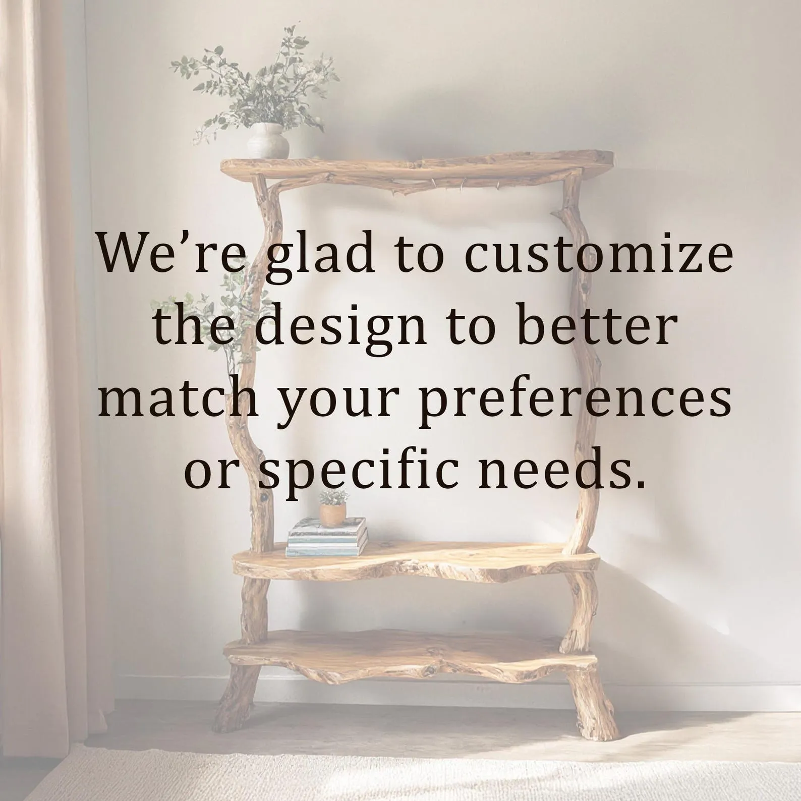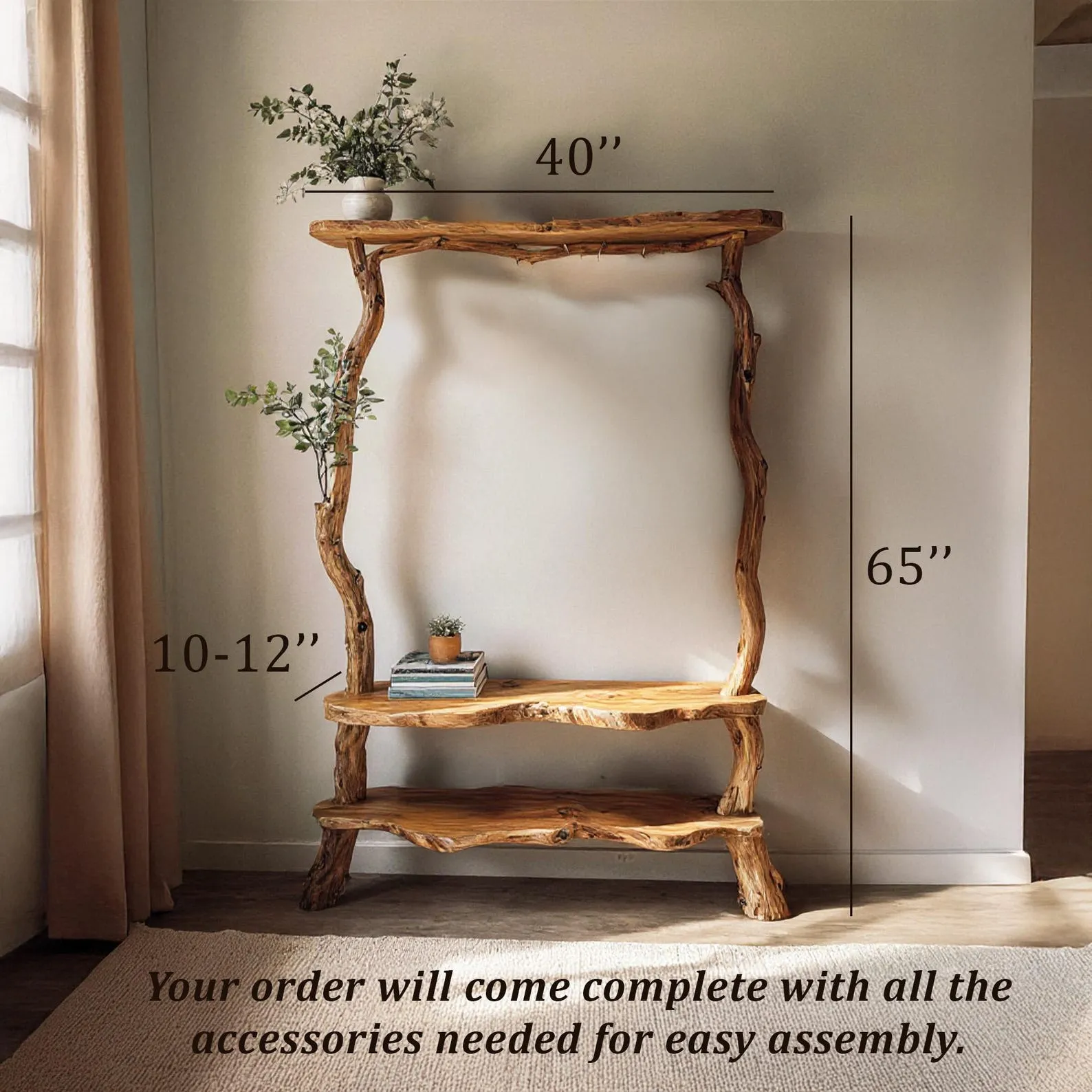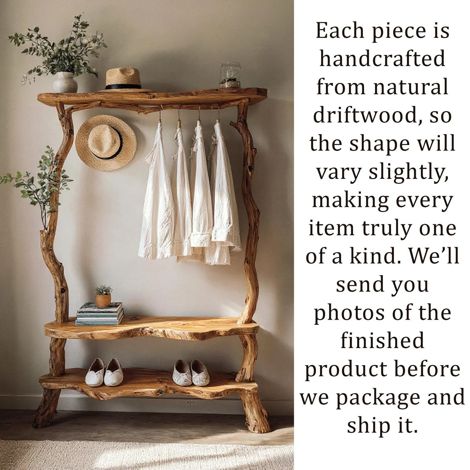 Bring nature into your home with this handcratfed natural wood tree shelf for wall, designed to add warmth and character to any space. Each piece starts with a careful selection of driftwood and reclaimed branches. We hand-pick each unique branch for its organic shape, then meticulously sculpt the tree trunk and roots to create an artistic form that brings life to your walls.The wall mounted clothes rack with shelves features solid wooden shelves, crafted for strength and durability. Every shelf is securely attached to the tree form and to your wall, providing a stable surface for storing clothing, towels, baskets, or decorative items. A sturdy hanging rod allows you to display your favorite garments, making this piece both functional and beautiful.Perfect for a wide range of spaces ? from entryways, hallways, and bedrooms to living rooms, nurseries, or boho-inspired boutiques. The design is fully customizable to suit your needs and your space.Please note that due to the handcrafted nature of this item, slight variations (? 2-3 inches) in size and shape may occur ? this adds to the uniqueness and charm of each piece.? Production time: 7?15 days? Shipping time: approx. 5?7 business daysIf you would like to request specific dimensions, wood finishes, or other custom options, please feel free to contact us. We are happy to create a custom wooden entryway organizer that fits your vision perfectly!Please see more similar unique Tree Branch Coat Rack here:www.etsy.com/shop/BonsaiHandcraft?ref=seller-platform-mcnav?ion_id=54460592