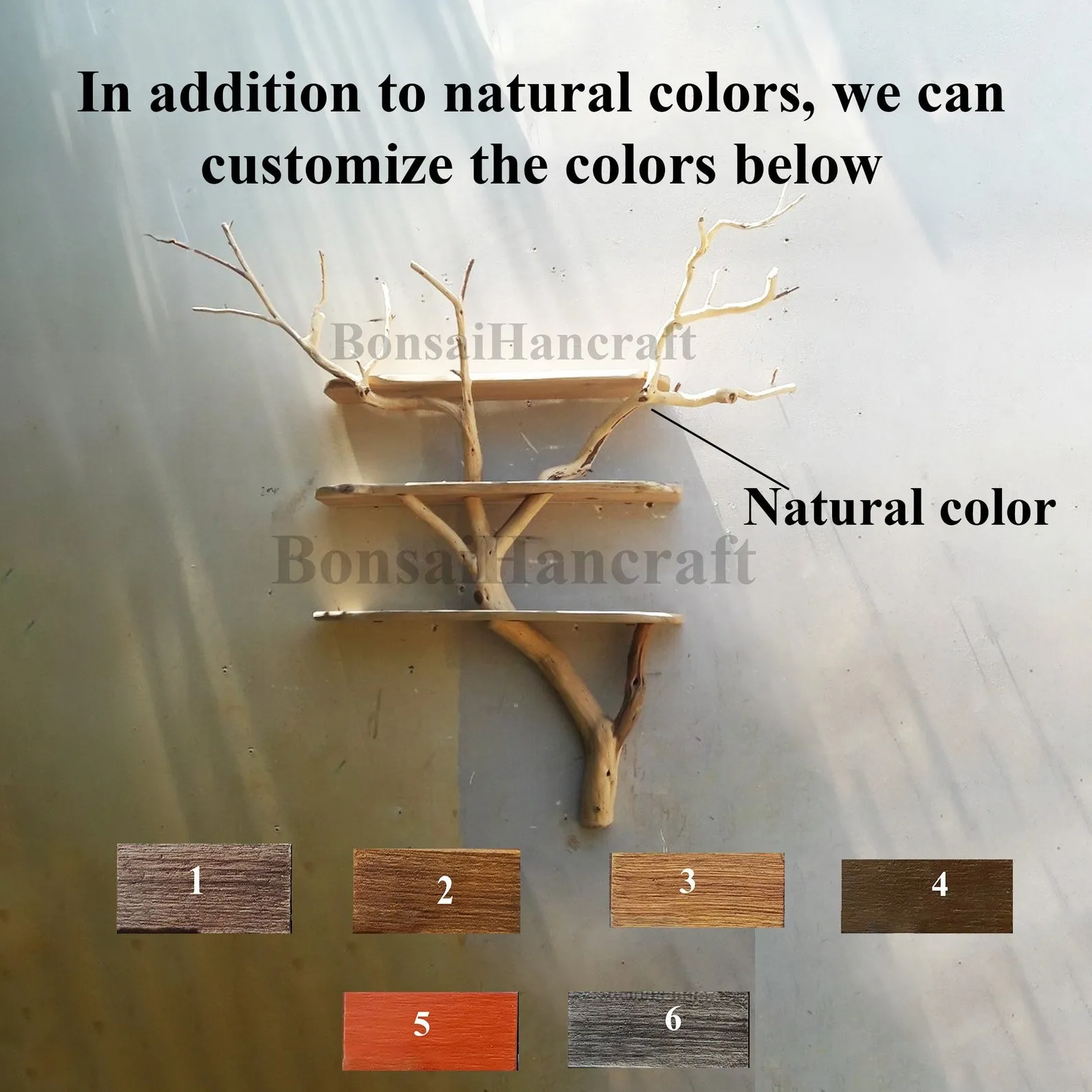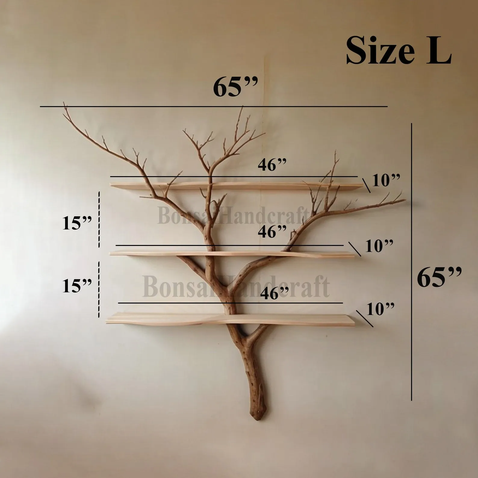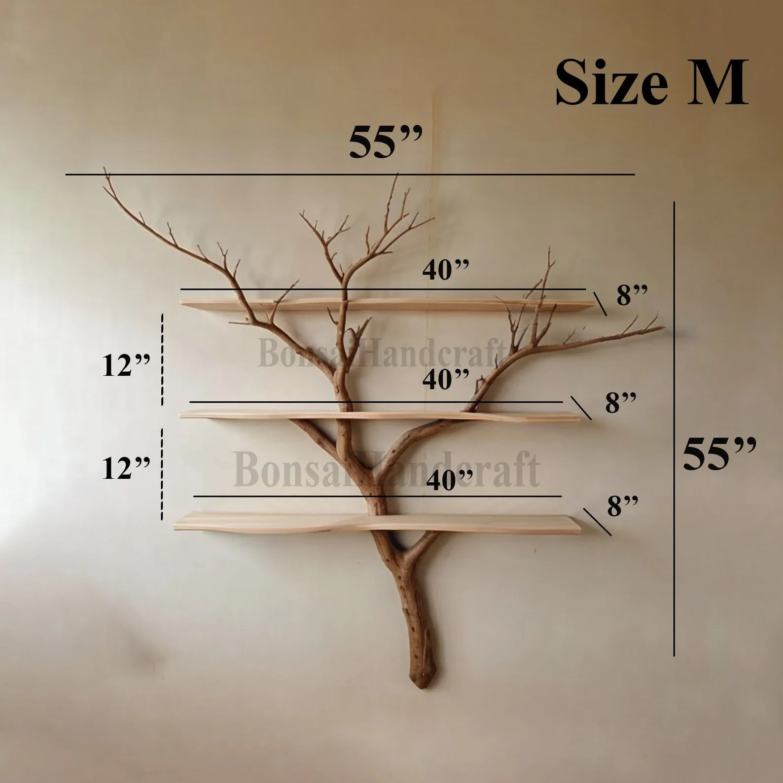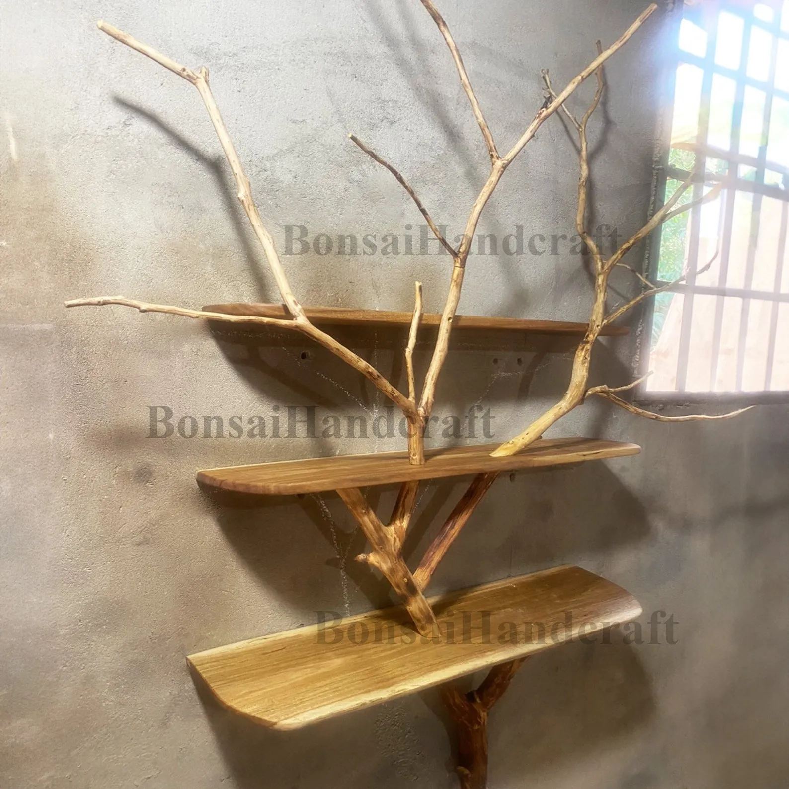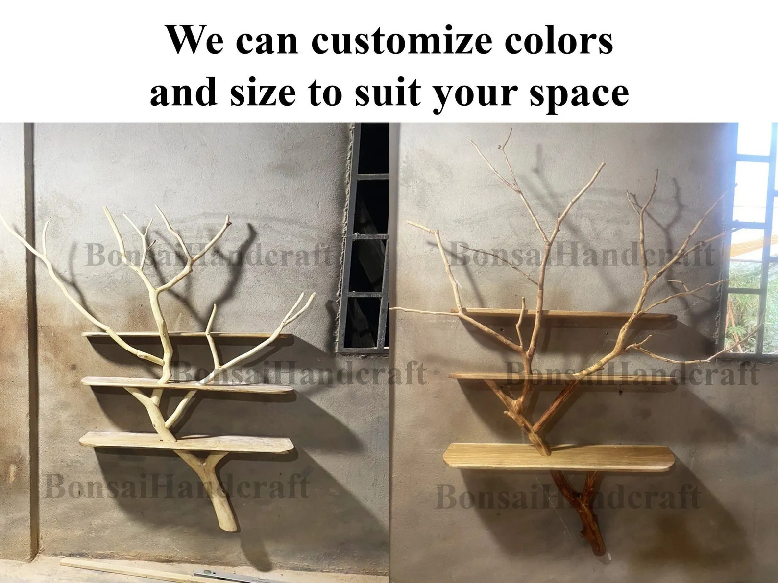 A Tree Bookshelf combined with natural branches, crafted from wood, creates a captivating and organic piece of furniture that seamlessly marries the warmth of wood with the raw beauty of nature. This unique design not only provides practical storage but also introduces a rustic and natural aesthetic to your living space.We are dedicated to sourcing the most exquisite tree branches from the forest for the crafting of your products. Prior to shipping, we will provide you with photographs of product to ensure your utmost satisfaction so please maintain communication with us throughout the order fulfillment process to ensure the swift completion and prompt delivery of your product.We kindly hope you can give us your phone number to ensure a seamless delivery process. Your cooperation in providing this information is crucial for ensuring the safe and efficient arrival of your valuable purchase.The bookshelf is constructed using sturdy and durable wood, ensuring both functionality and longevity. The integration of real tree branches into the design adds an authentic touch, with the natural texture and variations in the wood enhancing the overall visual appeal.The shelves, made from the quality wood, offer ample space for organizing books and displaying decorative items. The incorporation of natural branches as part of the support structure not only reinforces the shelving but also brings a touch of the outdoors inside.This wooden bookshelf with natural branches is an excellent choice for those who appreciate the beauty of natural materials and seek a piece of furniture that blends seamlessly with both modern and rustic interior styles. It serves as a functional storage solution while adding a unique and earthy charm to your home decor.? Please allow for a 1-3 inch variance due to manual measurements.? If you require custom adjustments to the shelf dimensions or tree branch design, please feel free to contact us; we are ready to design it to fit seamlessly into your living space.I am so happy to service you ????