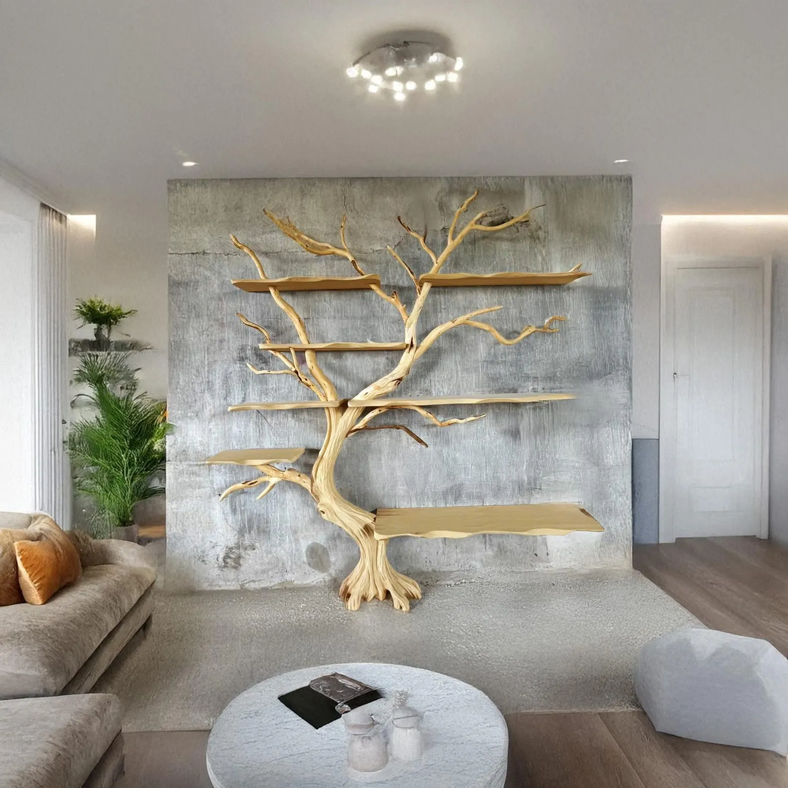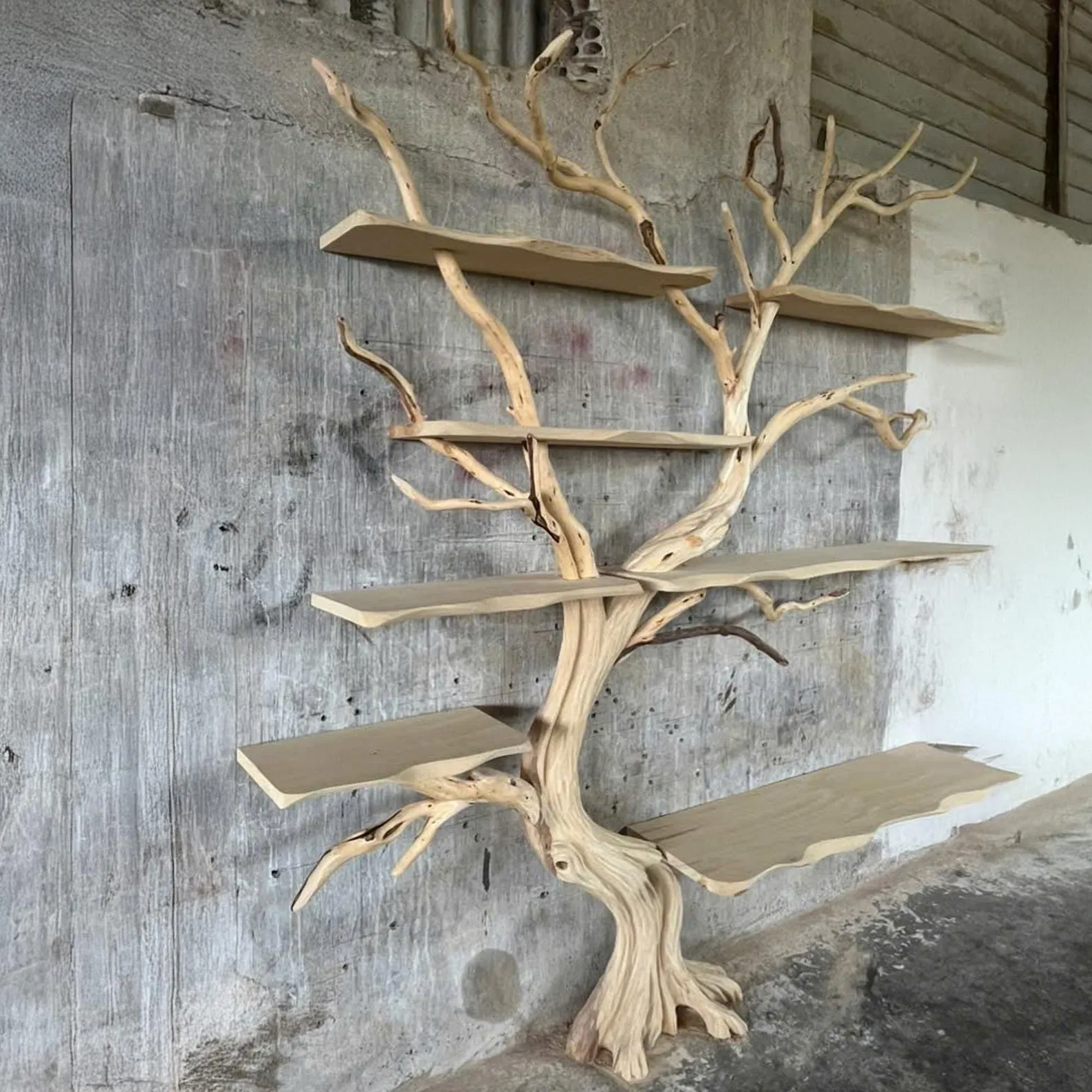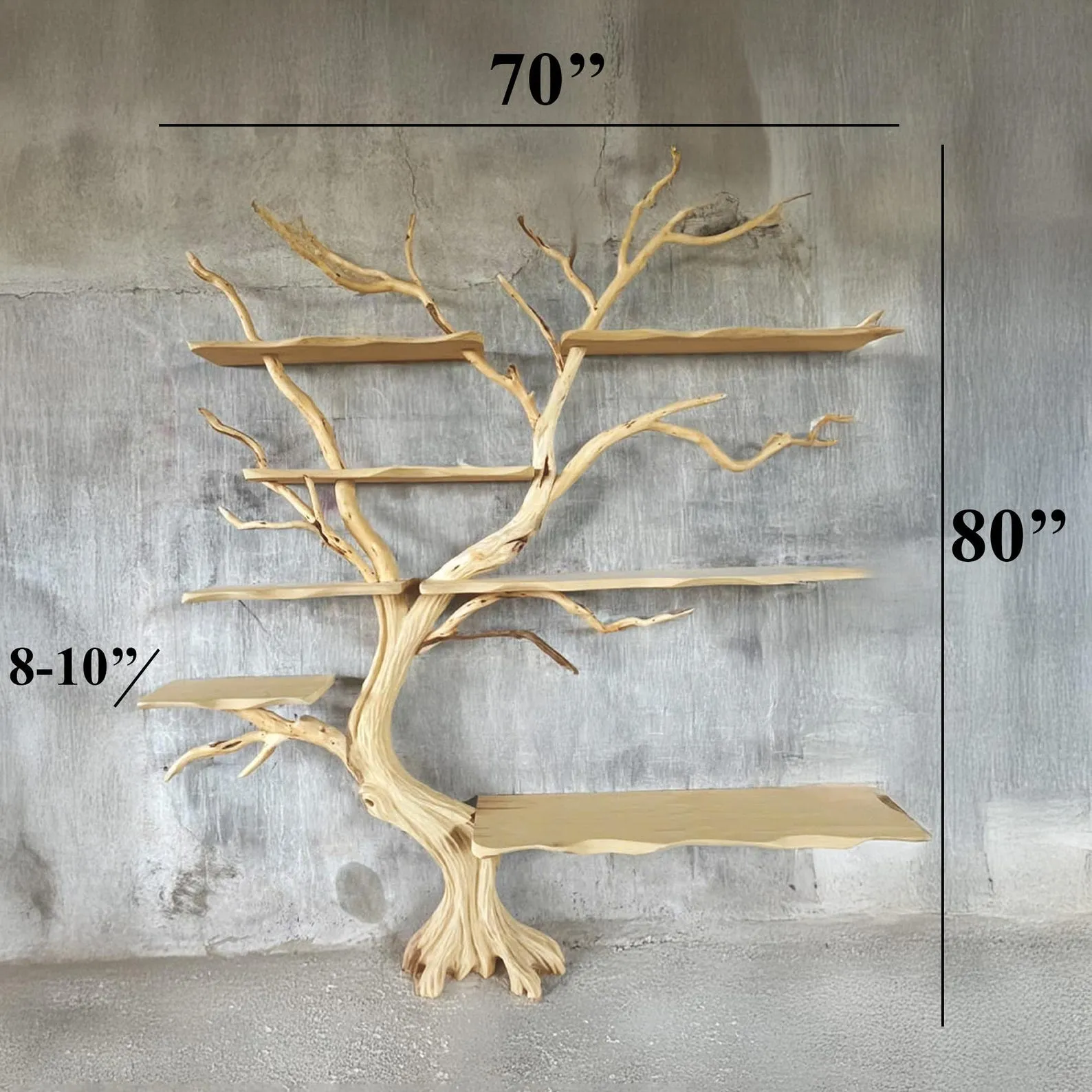 A natural wood bookshelf on wall combined with natural branches, crafted from wood, creates a captivating and organic piece of furniture that seamlessly marries the warmth of wood with the raw beauty of nature. This unique design not only provides practical storage but also introduces a rustic and natural aesthetic to your living space.We are dedicated to sourcing the most exquisite tree branches from the forest for the crafting of your products. Prior to shipping, we will provide you with photographs of product to ensure your utmost satisfaction so please maintain communication with us throughout the order fulfillment process to ensure the swift completion and prompt delivery of your product.We kindly hope you can give us your phone number to ensure a seamless delivery process. Your cooperation in providing this information is crucial for ensuring the safe and efficient arrival of your valuable purchase.The tree shape bookshelf is constructed using sturdy and durable wood, ensuring both functionality and longevity. The integration of real tree branches into the design adds an authentic touch, with the natural texture and variations in the wood enhancing the overall visual appeal.The shelves, made from the quality wood, offer ample space for organizing books and displaying decorative items. The incorporation of natural branches as part of the support structure not only reinforces the shelving but also brings a touch of the outdoors inside.This floor bookcase solid wood with natural branches is an excellent choice for those who appreciate the beauty of natural materials and seek a piece of furniture that blends seamlessly with both modern and rustic interior styles. It serves as a functional storage solution while adding a unique and earthy charm to your home decor.? Please allow for a 1-3 inch variance due to manual measurements.? If you require custom adjustments to the shelf dimensions or tree branch design, please feel free to contact us; we are ready to design it to fit seamlessly into your living space.? Please see assembly instructions here: https://www.youtube.com/watch?v=aQ5QKIyKk8gI am so happy to service you ????