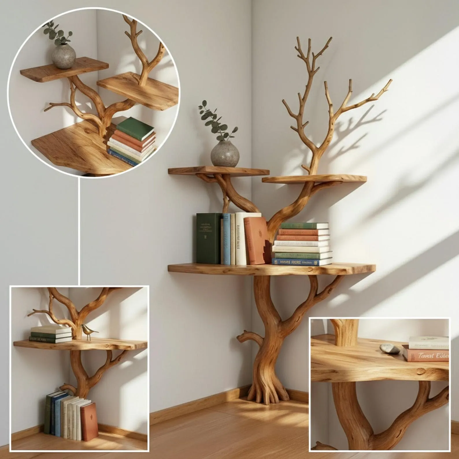 Tree branch shelf corner bookshelf solid wood driftwood wall art bookcase decoration