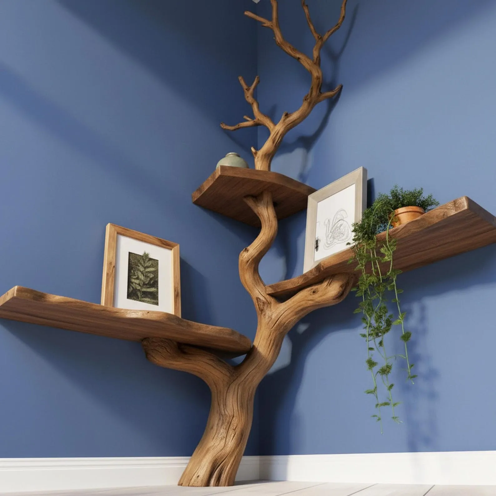 Bring the beauty of nature into your home with this handcrafted tree branch bookshelf, a stunning driftwood wall bookcase that perfectly blends artistic design and functional storage.