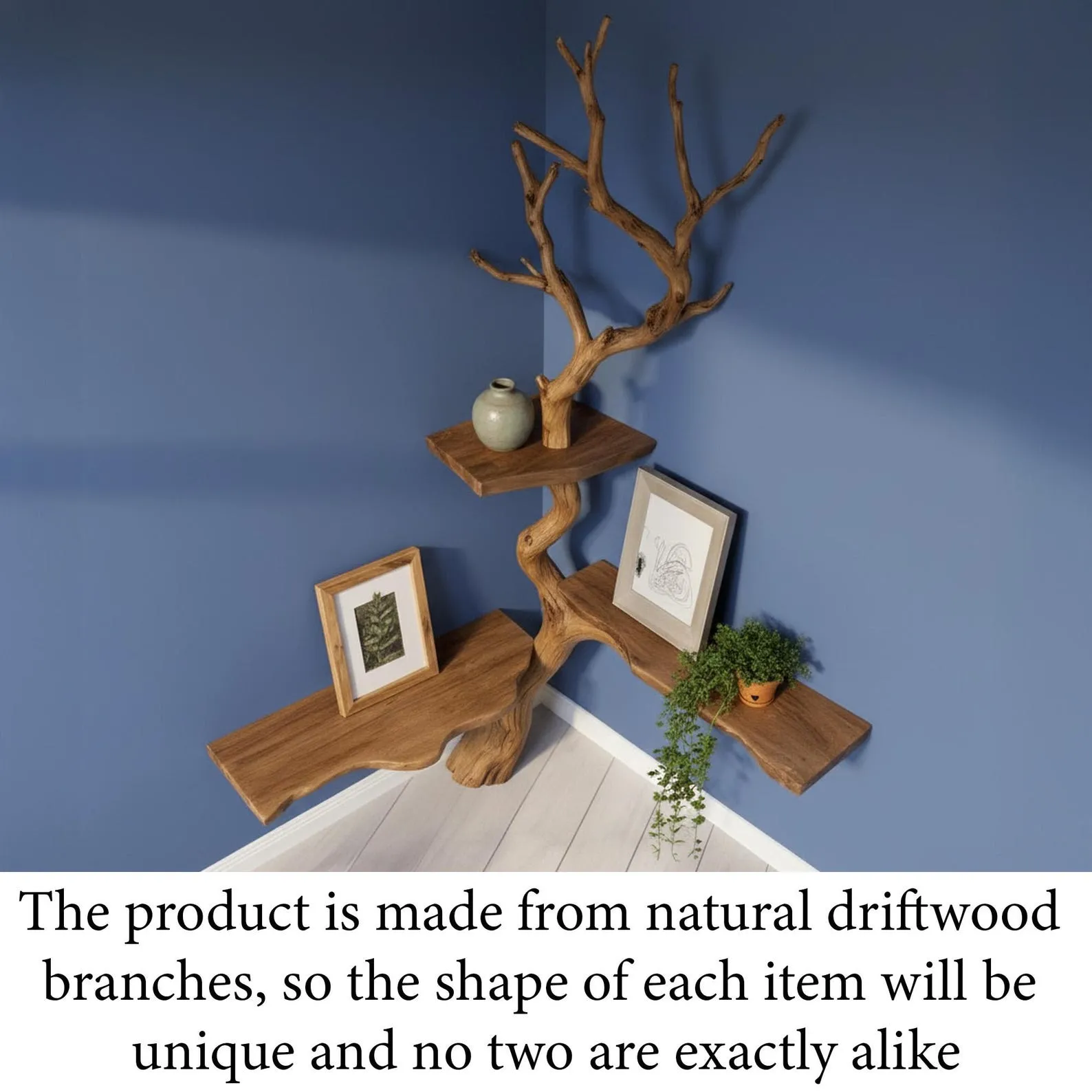 ?? Each tree shelves is handcrafted from solid driftwood ? each piece highlights natural wood grain & organic form