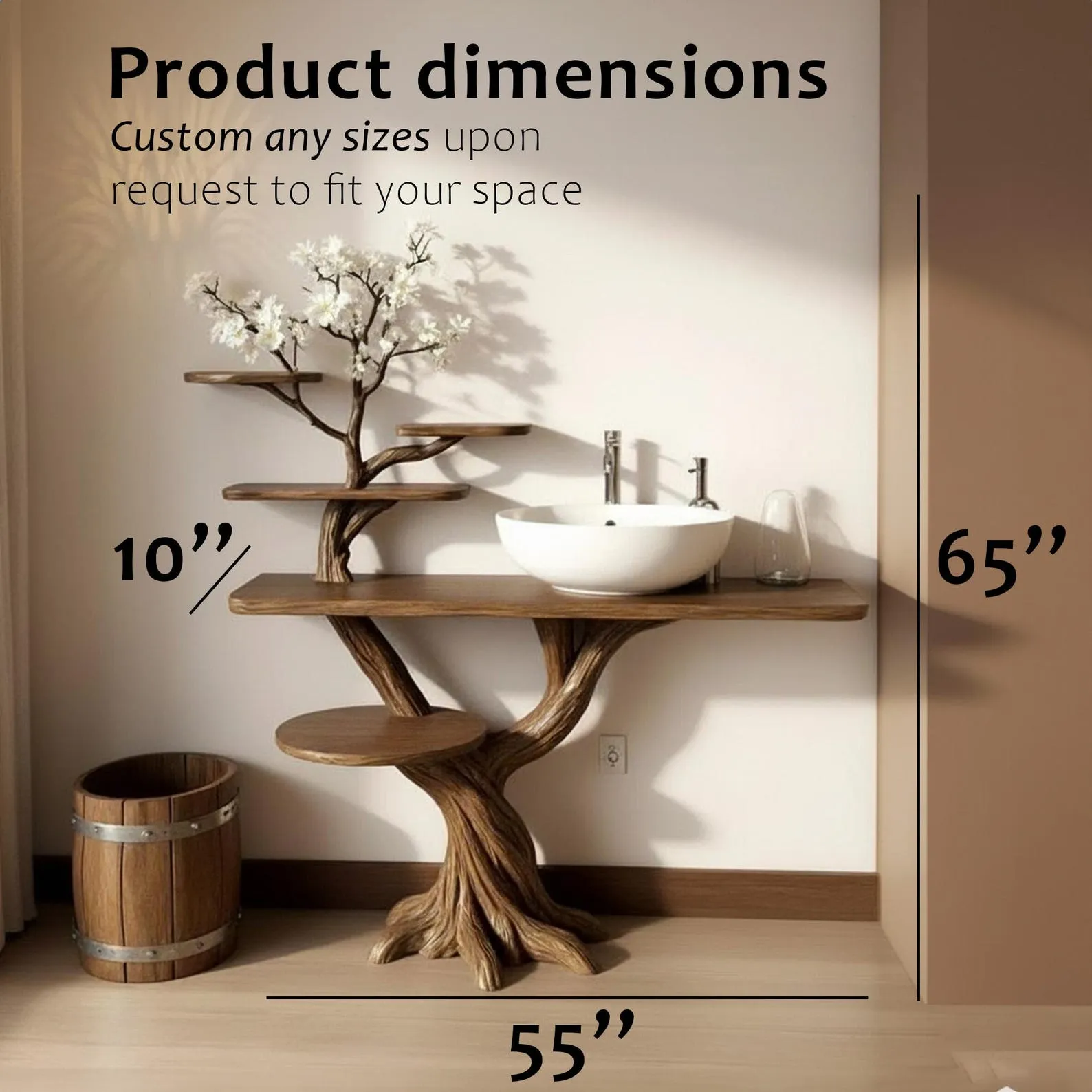 Tree Shaped Wood Vanity Sink ‘ Handcrafted Natural Bathroom Furniture