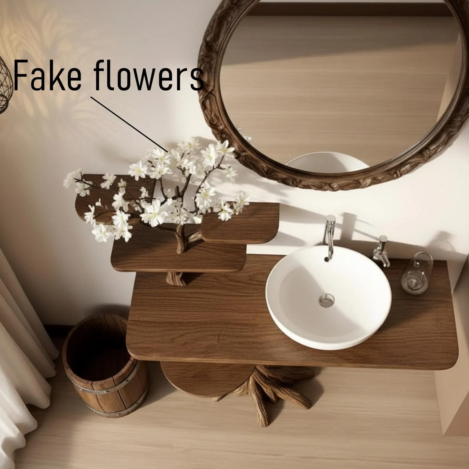 Beyond its aesthetic allure, this solid wood wash basin stand is designed for everyday use with remarkable durability. The sturdy root-shaped base ensures stability, while the multi-layer shelves provide functional versatility for compact or open bathrooms. The organic form enhances both the visual and emotional warmth of your space, blending seamlessly with natural lighting, stone textures, and earthy Decor.