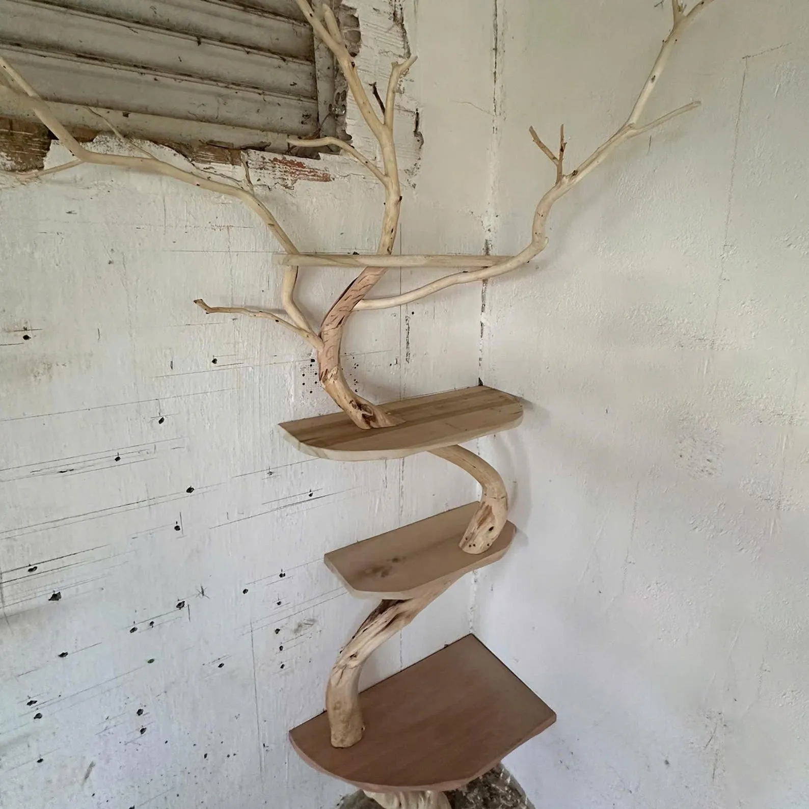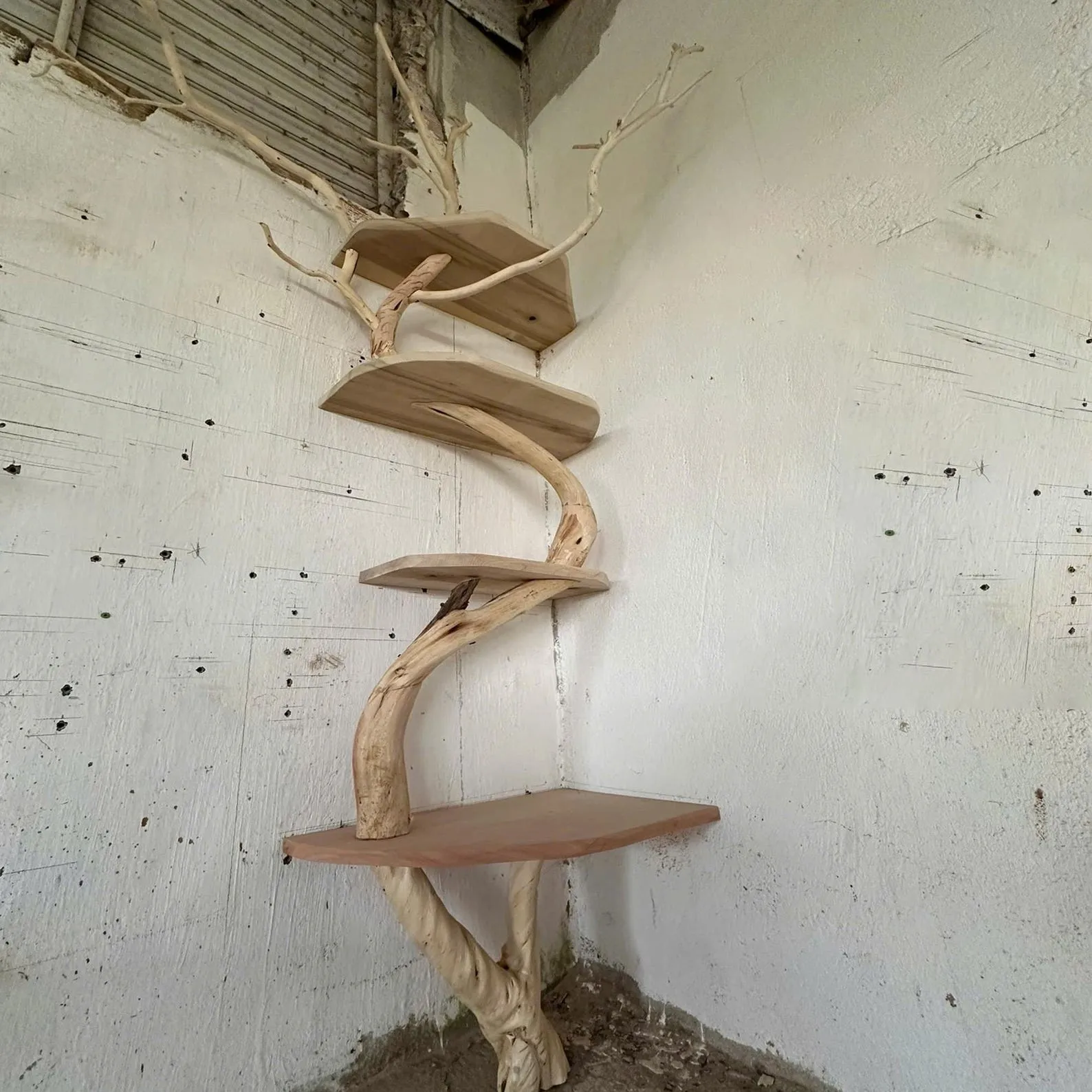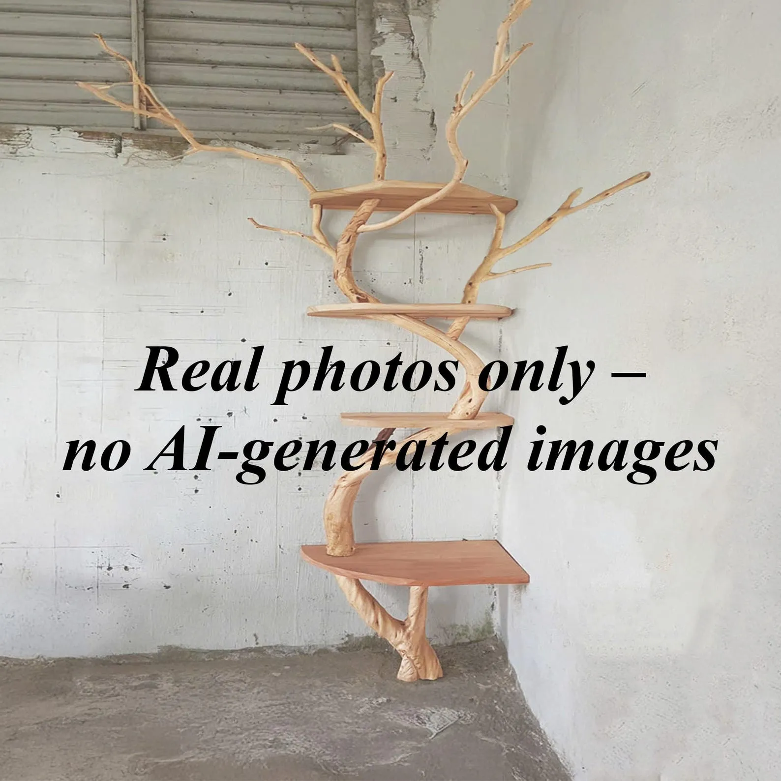 Antique shelving unit crafted from solid wood, this tree branch live edge corner shelf seamlessly combines practical storage with the raw beauty of nature by incorporating real tree branches into its design. The unique fusion of wood warmth and natural aesthetics creates an organic piece of furniture that adds rustic charm to any living space.The sturdy construction ensures both functionality and longevity, while the integration of real tree branches adds an authentic touch, enhancing the overall visual appeal with natural textures and variations in the wood.Made from high-quality wood, the shelves provide ample space for organizing books and displaying decorative items. The incorporation of natural branches as part of the support structure not only reinforces the shelving but also brings a touch of the outdoors inside.Ideal for those who appreciate the beauty of natural materials, this tree shape bookshelf with natural branches effortlessly blends with both modern and rustic interior styles. It not only serves as a functional storage solution but also adds a unique and earthy charm to home decor.Please see more similar unique Tree Branch Coat Rack here:www.etsy.com/shop/BonsaiHandcraft?ref=seller-platform-mcnav?ion_id=54460592? Please allow for a 1-3 inch variance due to manual measurements.? For custom adjustments to shelf dimensions or tree branch design, feel free to contact us; we are ready to design it to seamlessly fit into your living space.? Please see assembly instructions here: https://youtube.com/shorts/mrrFIbs3edg?si=lLEieOR5ZFBS670jWe take pride in serving you with dedication and care ????