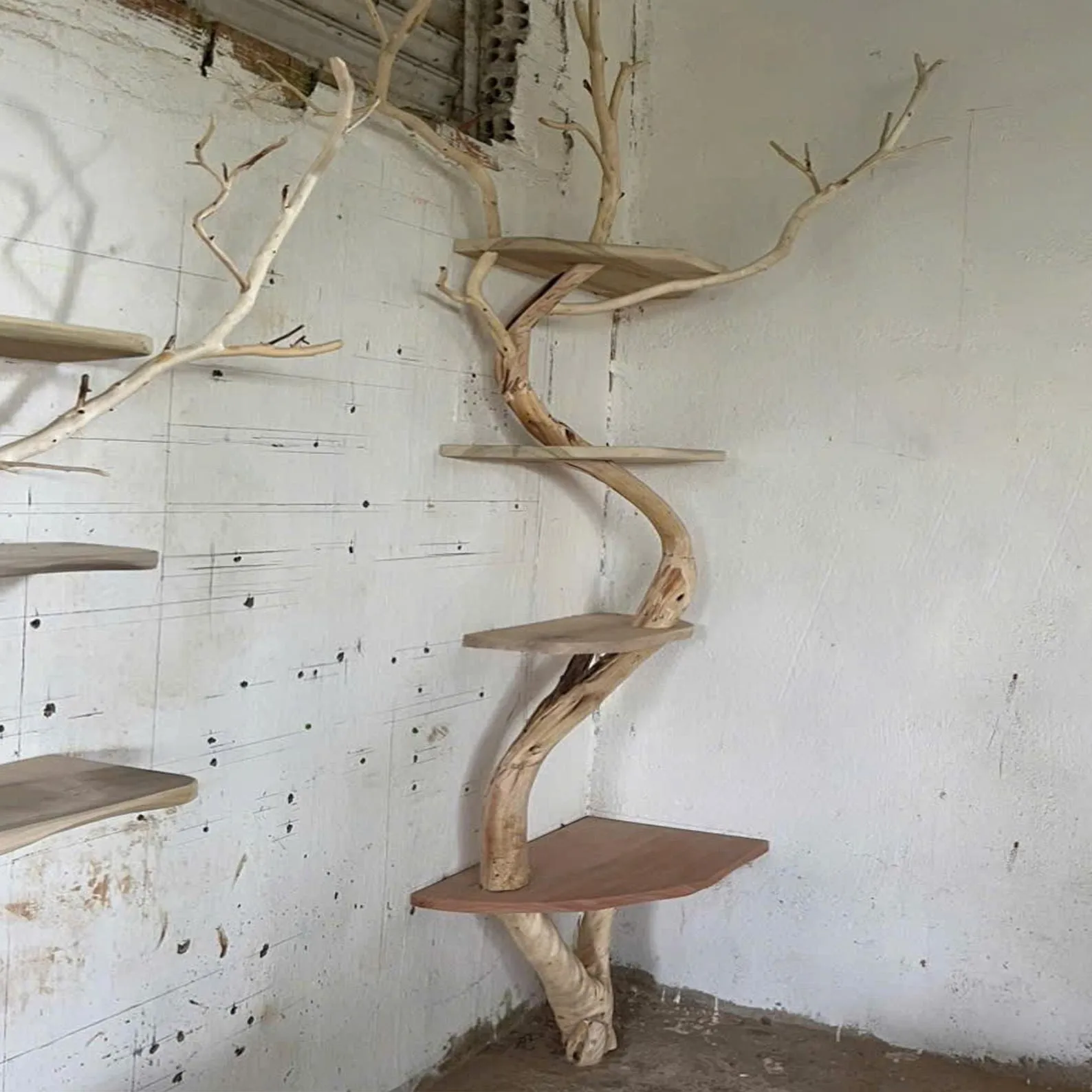 Tree branch bookshelf driftwood branch handcrafted wood art custom floating shelves on wall for home decoration