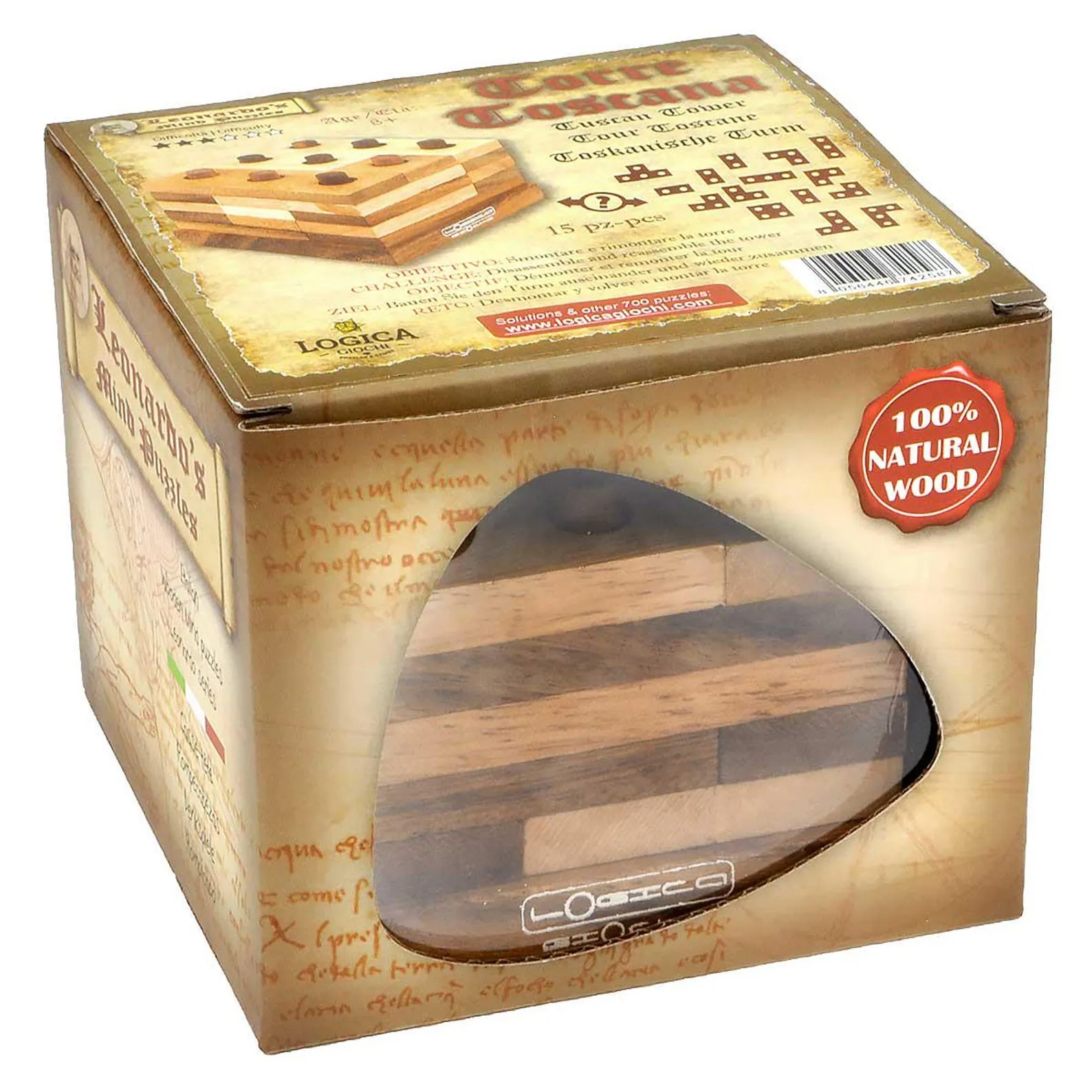 Tuscany Tower – Brain Teaser in Fine Wood – Difficulty 3/6 Hard – Leonardo da Vinci Collection