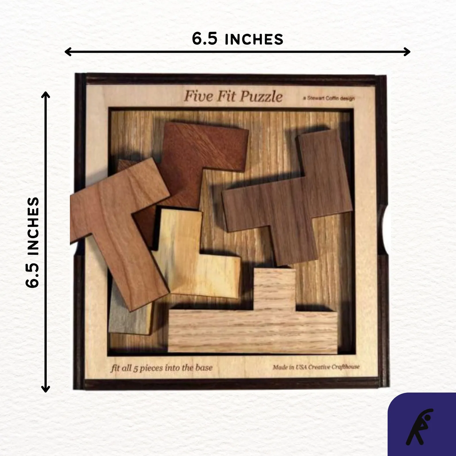Wood Brain Teaser Puzzle For Adults, Fit Five Pieces, Difficult Puzzle, Wood Logic Puzzle, Mind Game, Hard Puzzle, Stewart Coffin Puzzle
