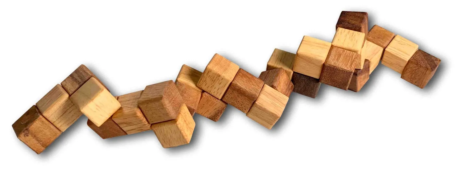 The blocks will shift and twist around in every plane. They make cubes or rectangles of course, but beyond that you can use your imagination to make wondrous shapes.This is a great tool to develop dexterity skills, focus, and creativity.The 27 block version is the most popular and is great for any age ages 7 to elderly. Beyond the cube, we provide 18 other shapes you can try and make.This design has been called “Fidget blocks” in some craft books and is usually quite short with very small blocks. We have tried to take this concept to a whole new level but making a high quality product with comfortably large blocks in lengths long enough to permit creative shapes to be made.