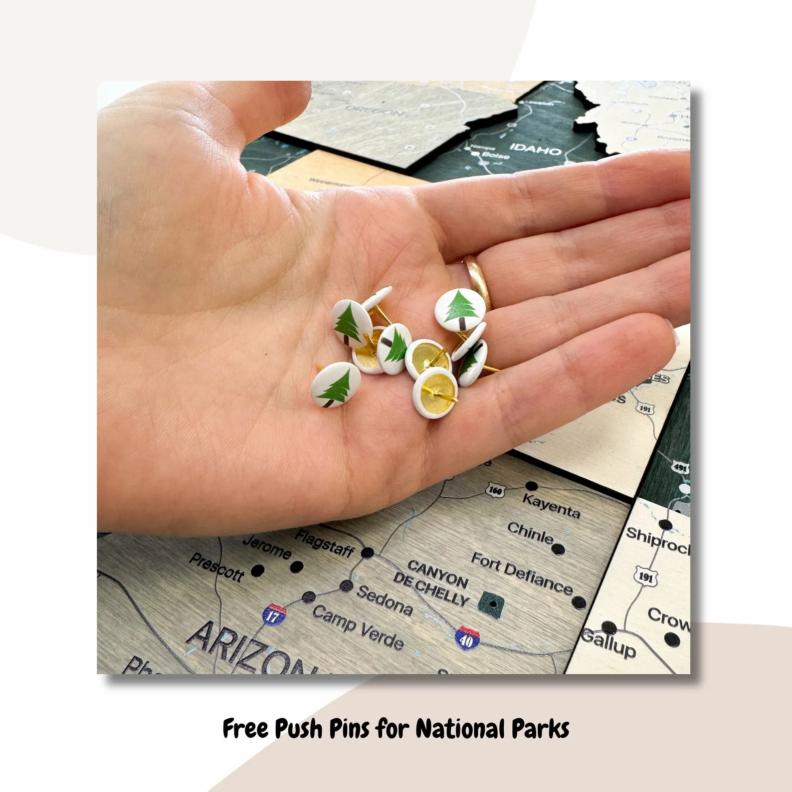 USA Wooden Map with National Parks for Wall Decoration ? US Push Pin Map – Mark Your Lovely National Parks ? Best Gift for Traveller