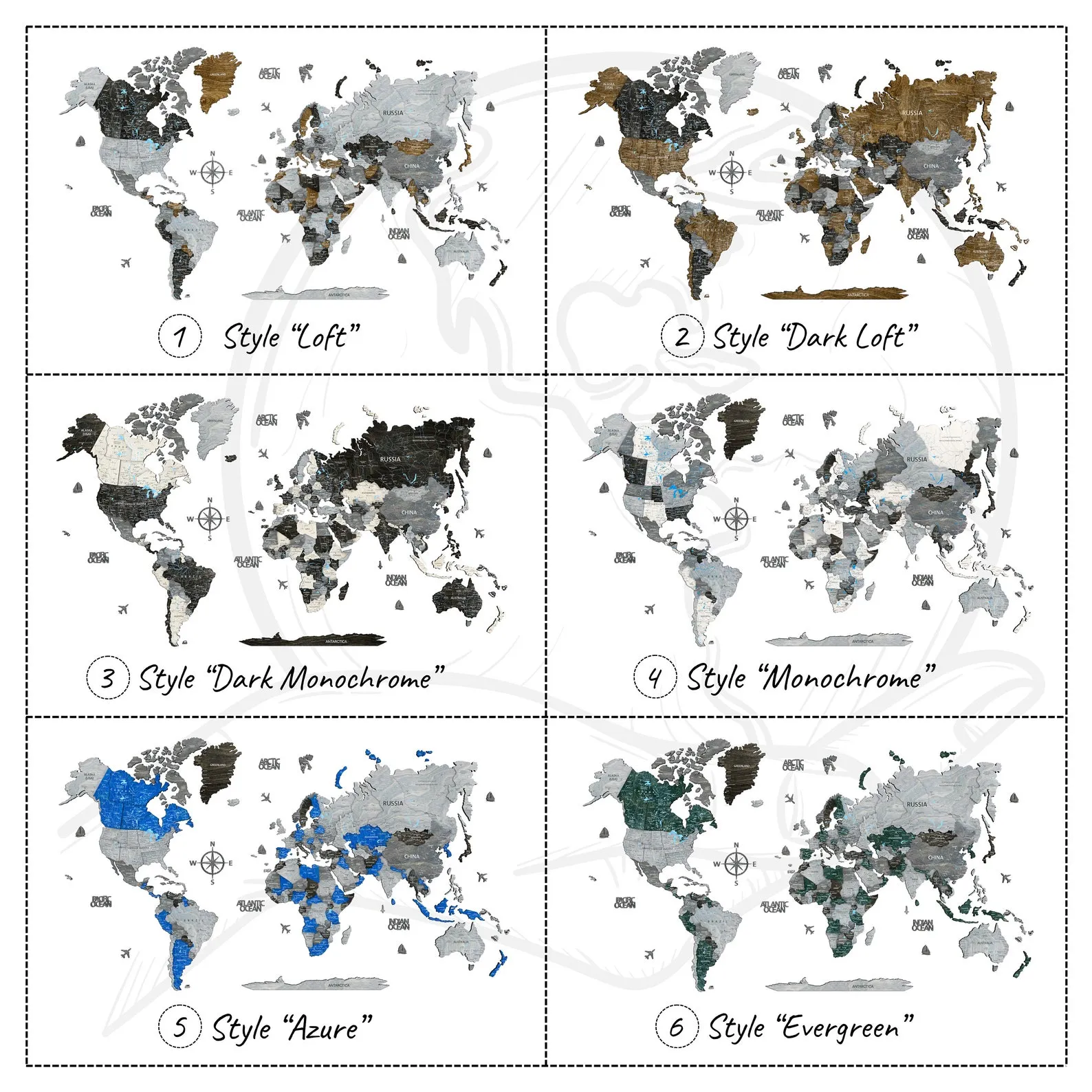 ? Features of the world map: a hidden base under the map creating a floating effect on the wall