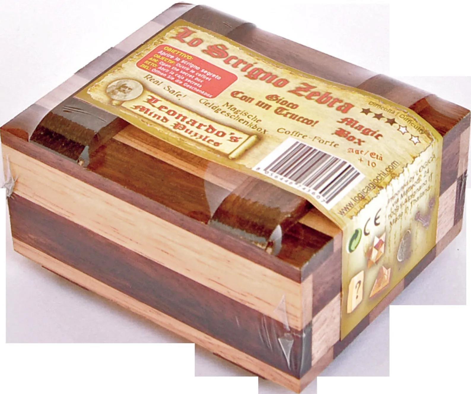 Zebra Box – Wooden Brain Teaser – Secret Box – Difficulty 3/6 Hard – Magic Money Box – Leonardo da Vinci Collection